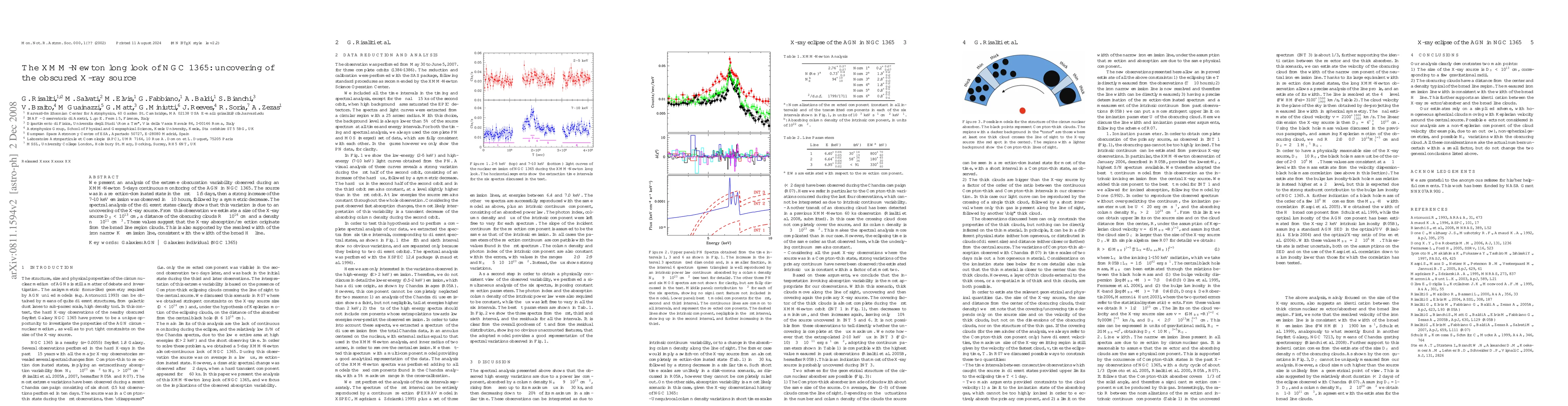 We present an analysis of the extreme obscuration variability observed during an XMM-Newton 5-days continuous monitoring of the AGN in NGC 1365. The source was in a reflection-dominated state in the first ~1.5 days, then a strong increase of the 7-10 keV emission was observed in ~10 hours, followed by a symmetric decrease. The spectral analysis of the different states clearly shows that this variation is due to an uncovering of the X-ray source. From this observation we estimate a size of the X-ray source D_S<10^13 cm, a distance of the obscuring clouds R~10^16 cm and a density n~10^11 cm^{-3}. These values suggest that the X-ray absorption/reflection originate from the broad line region clouds. This is also supported by the resolved width of the iron narrow Kalpha emission line, consistent with the width of the broad Hbeta line.