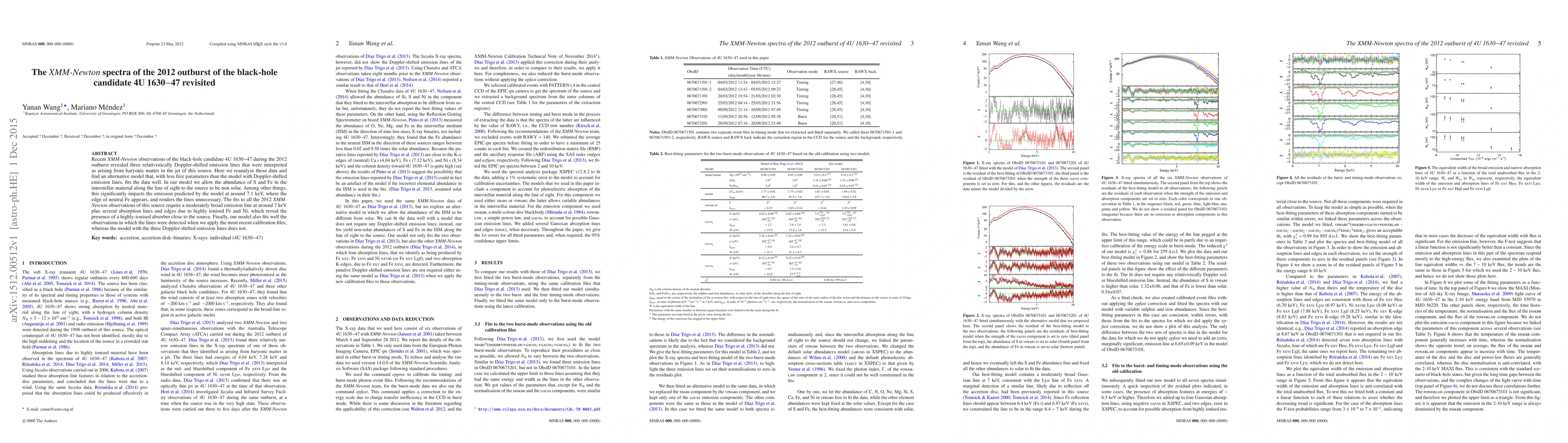 This paper revisits XMM-Newton spectra from the 2012 outburst of the black-hole candidate 4U 1630-47, proposing an alternative model that fits the data better with fewer free parameters. The new model suggests non-solar abundances of S and Fe, eliminating the need for relativistically Doppler-shifted emission lines previously interpreted as jet emissions.