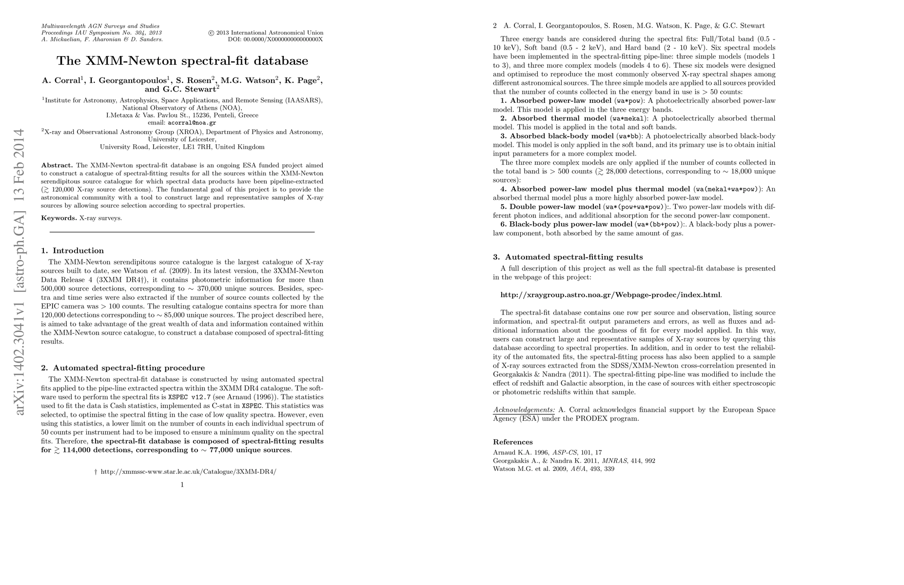 The XMM-Newton spectral-fit database is constructed using automated spectral fits applied to pipeline-extracted spectra within the 3XMM-DR4 catalogue.