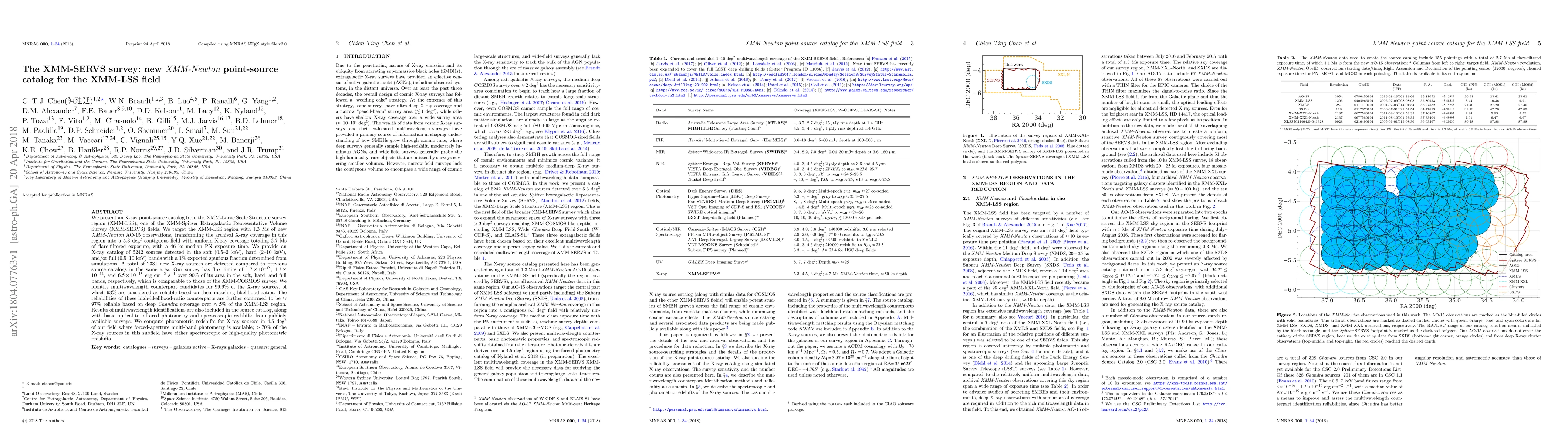 The XMM-SERVS survey presents a new XMM-Newton point-source catalog for the XMM-LSS field, featuring 5242 detected sources with a 1% spurious fraction. The survey, utilizing 2.7 Ms of flare-filtered exposure, identifies 2381 new sources and provides multiwavelength counterparts for 99.9% of the detected X-ray sources.