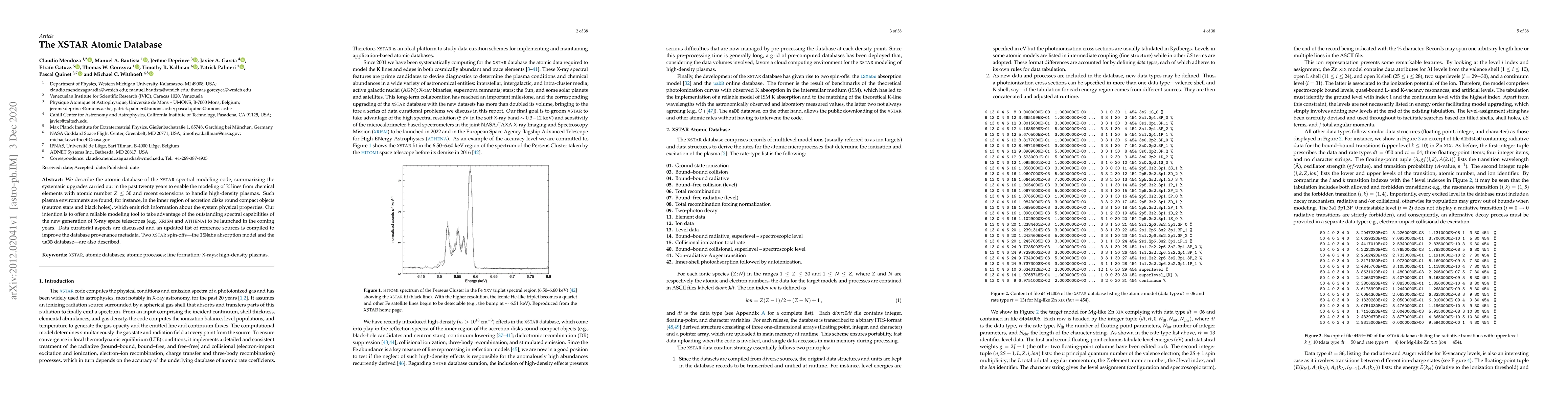 We describe the atomic database of the XSTAR spectral modeling code, summarizing the systematic upgrades carried out in the past twenty years to enable the modeling of K lines from chemical elements with atomic number $Z\leq 30$ and recent extensions to handle high-density plasmas. Such plasma environments are found, for instance, in the inner region of accretion disks round compact objects (neutron stars and black holes), which emit rich information about the system physical properties. Our intention is to offer a reliable modeling tool to take advantage of the outstanding spectral capabilities of the new generation of X-ray space telescopes (e.g., XRISM and ATHENA) to be launched in the coming years. Data curatorial aspects are discussed and an updated list of reference sources is compiled to improve the database provenance metadata. Two XSTAR spin-offs -- the ISMabs absorption model and the uaDB database -- are also described.
