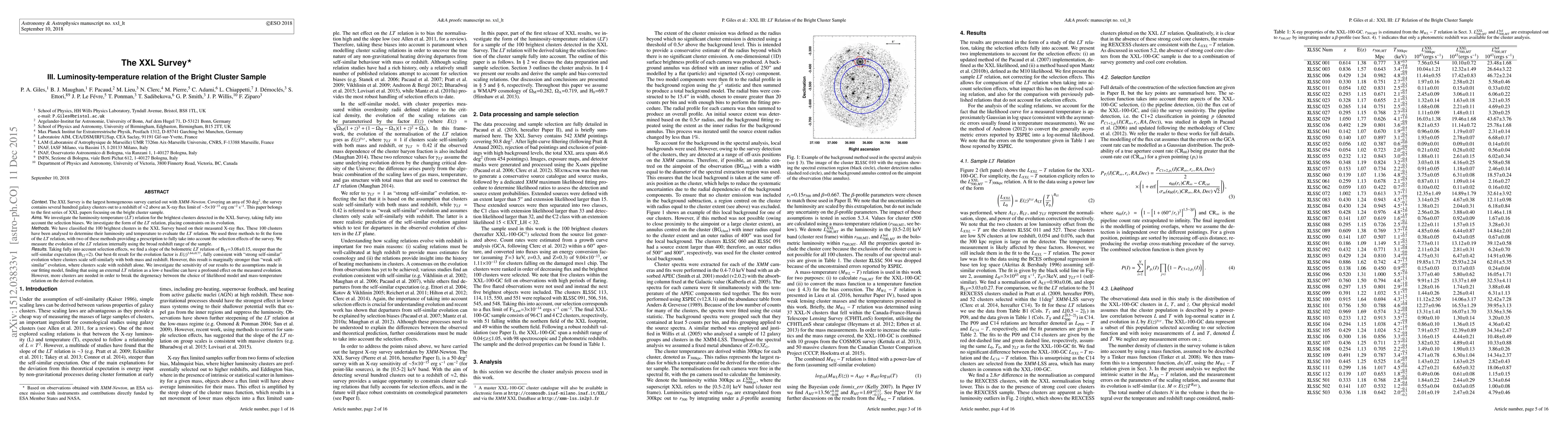 The XXL Survey III investigates the luminosity-temperature (LT) relation for the brightest galaxy clusters, finding a steeper than expected slope of B$_{\rm LT}=3.08\pm0.15$ and consistent with strong self-similar evolution. The study highlights the need for more clusters to resolve the degeneracy in evolutionary models.