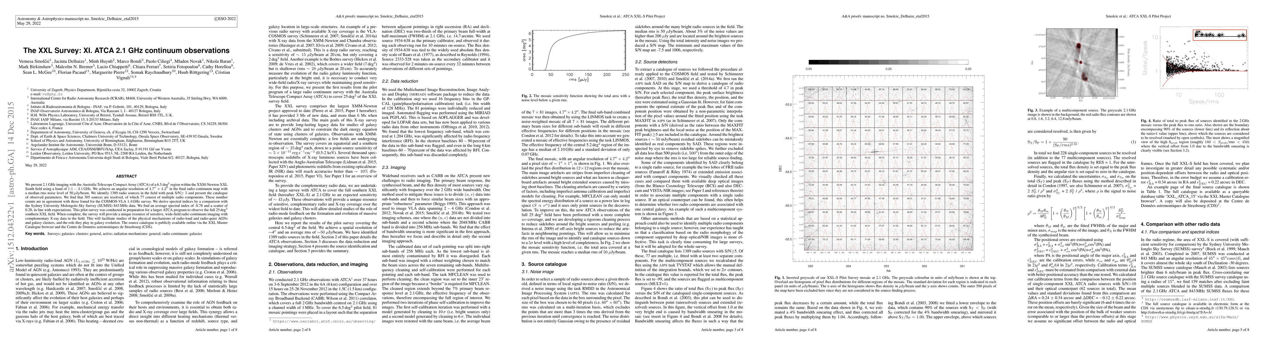 This study presents 2.1 GHz radio continuum observations from the XXL Survey South field using ATCA, identifying 1389 radio sources. The findings align with COSMOS-VLA survey results, showing an average spectral index of -0.78. This pilot survey paves the way for observing the full 25 deg^2 XXL field, offering valuable data for studying radio-loud and quiet AGNs and galaxy evolution.