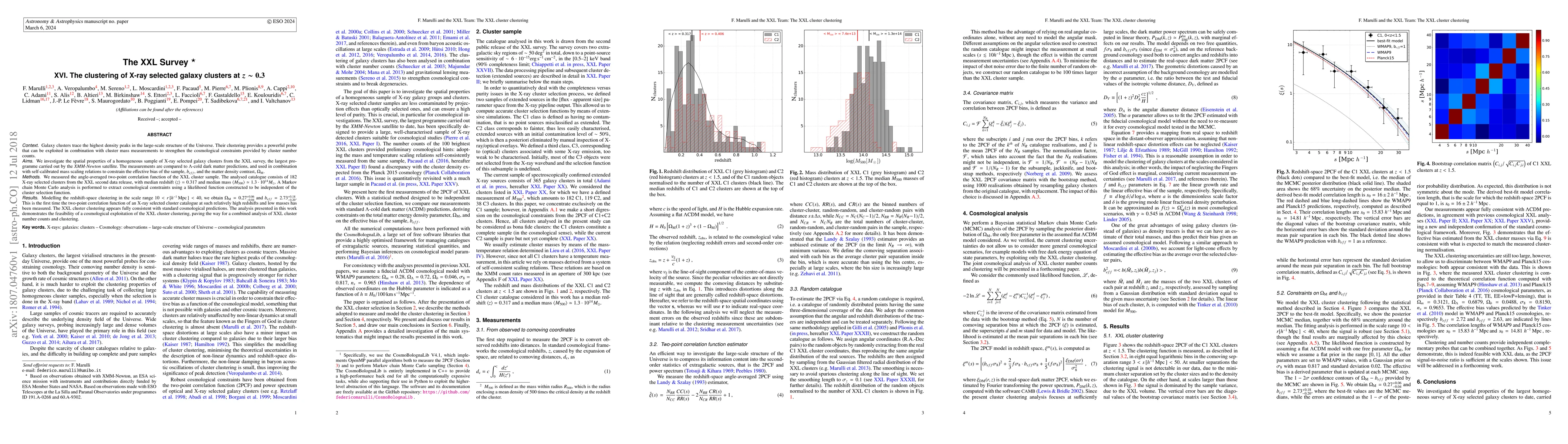 two-point correlation function of the XXL cluster sample. The analysed