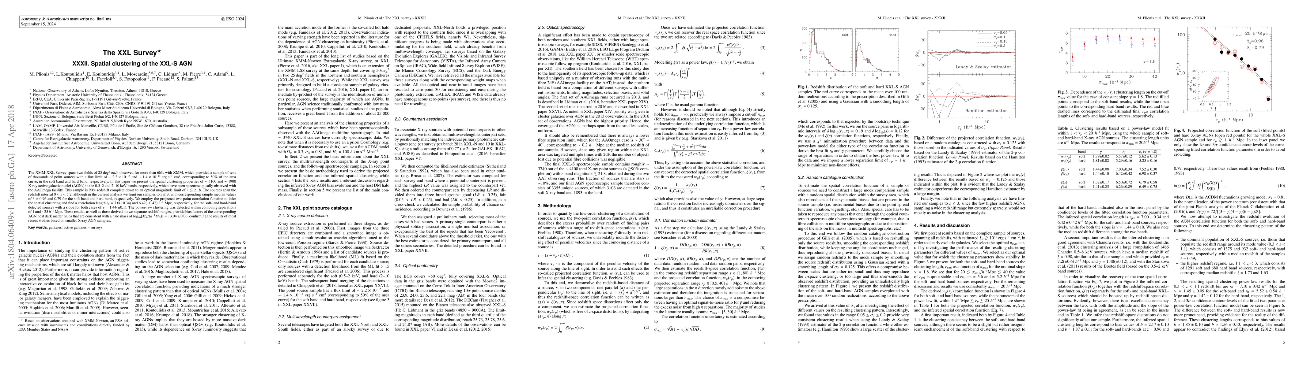 The XMM-XXL Survey detects spatial clustering in tens of thousands of X-ray active galactic nuclei (AGNs), with a median redshift of 0.96 and 0.79 for soft and hard bands, respectively.