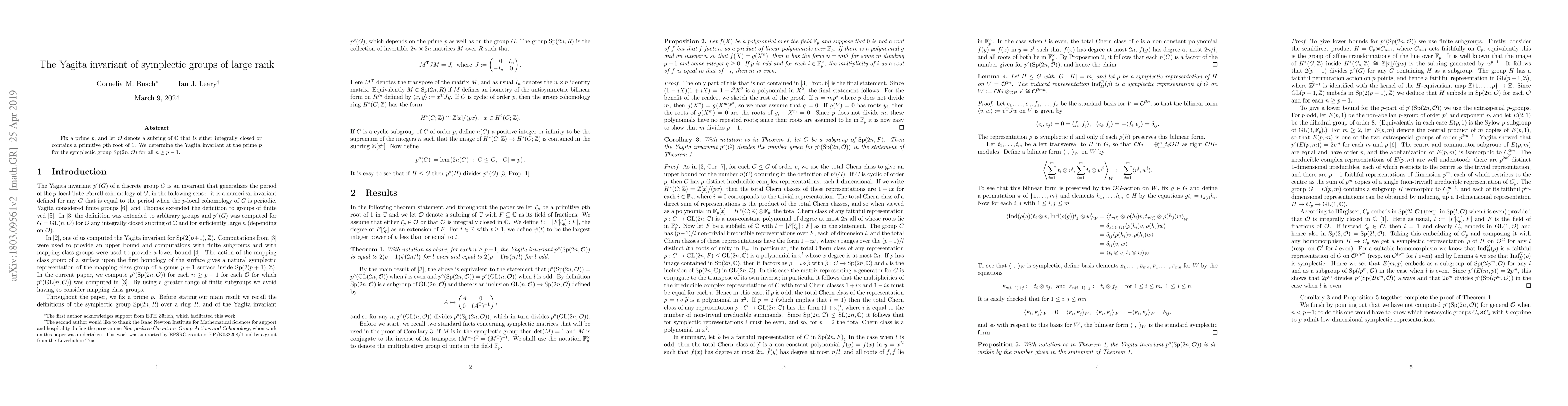 Fix a prime $p$, and let $R$ be any subring of the complex numbers that is either integrally closed or contains a primitive $p$th root of 1. For each $n\geq p-1$ we compute the Yagita invariant at the prime $p$ for the symplectic group $Sp(2n,R)$.