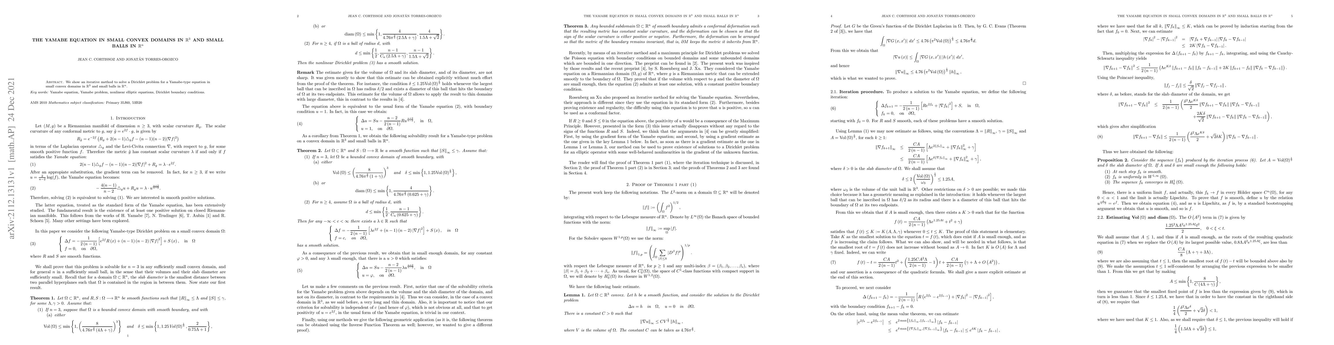 This paper presents an iterative method to solve a Dirichlet problem for a Yamabe-type equation in small convex domains in $\mathbb{R}^3$ and small balls in $\mathbb{R}^3$. The method demonstrates the effectiveness in these geometric settings.