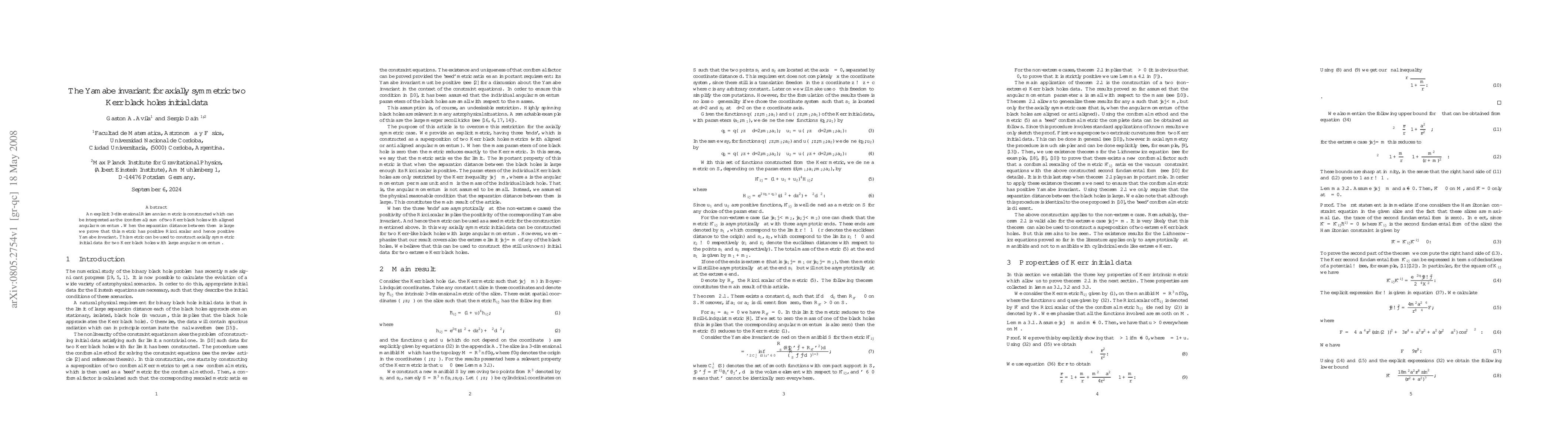 This paper constructs a Riemannian metric representing the sum of two aligned Kerr black holes and proves its positive Ricci scalar and Yamabe invariant when the black holes are sufficiently separated, enabling the creation of axially symmetric initial data for such configurations.
