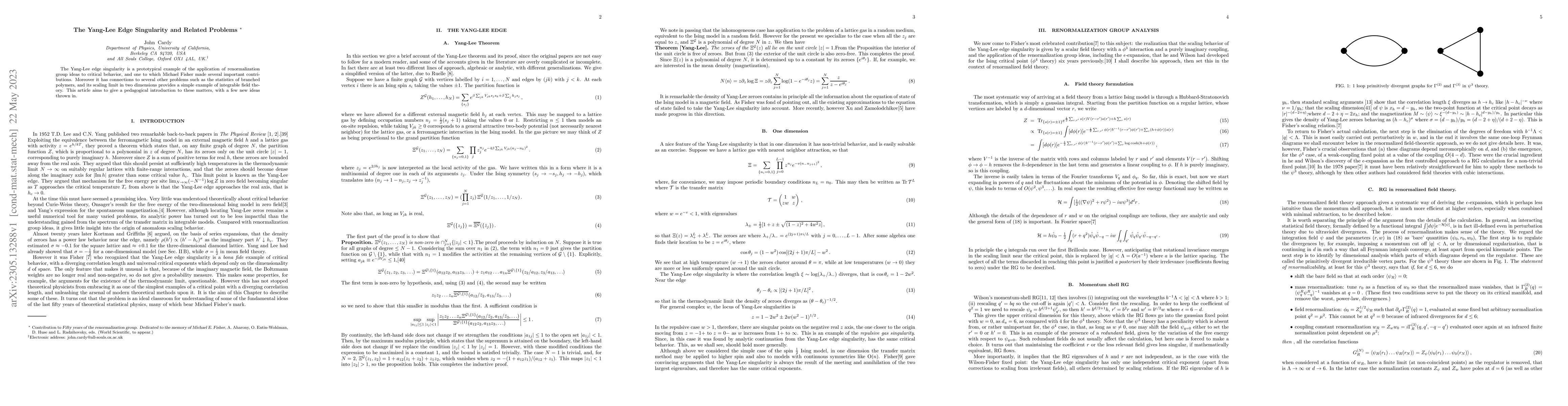 The paper provides a pedagogical introduction to the Yang-Lee edge singularity, its connections to other problems like branched polymers, and its representation as an integrable field theory in two dimensions, utilizing renormalization group ideas and scaling arguments.