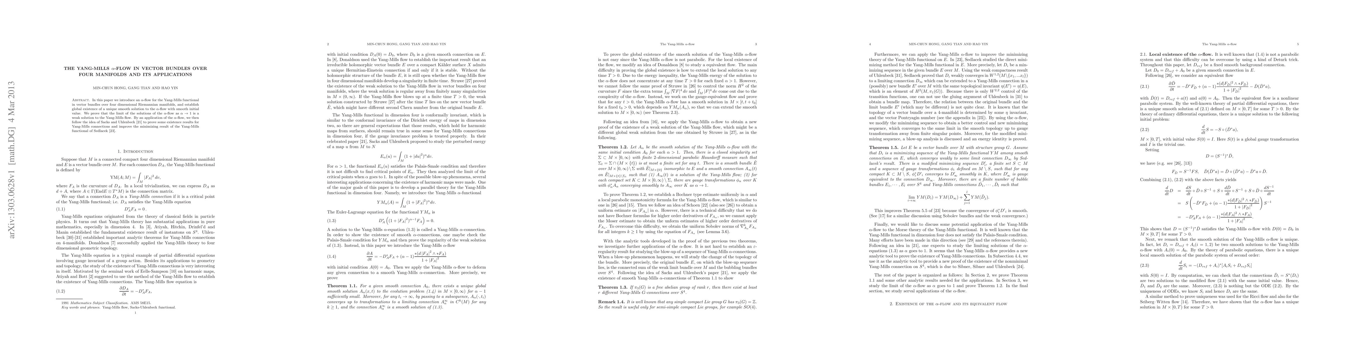 This paper introduces an \alpha-flow for the Yang-Mills functional in vector bundles over four-dimensional Riemannian manifolds, proving global existence and uniqueness of a smooth solution. It also demonstrates that the limit of \alpha-flow solutions as \alpha approaches 1 is a weak solution to the Yang-Mills flow, and applies this to establish existence results for Yang-Mills connections.
