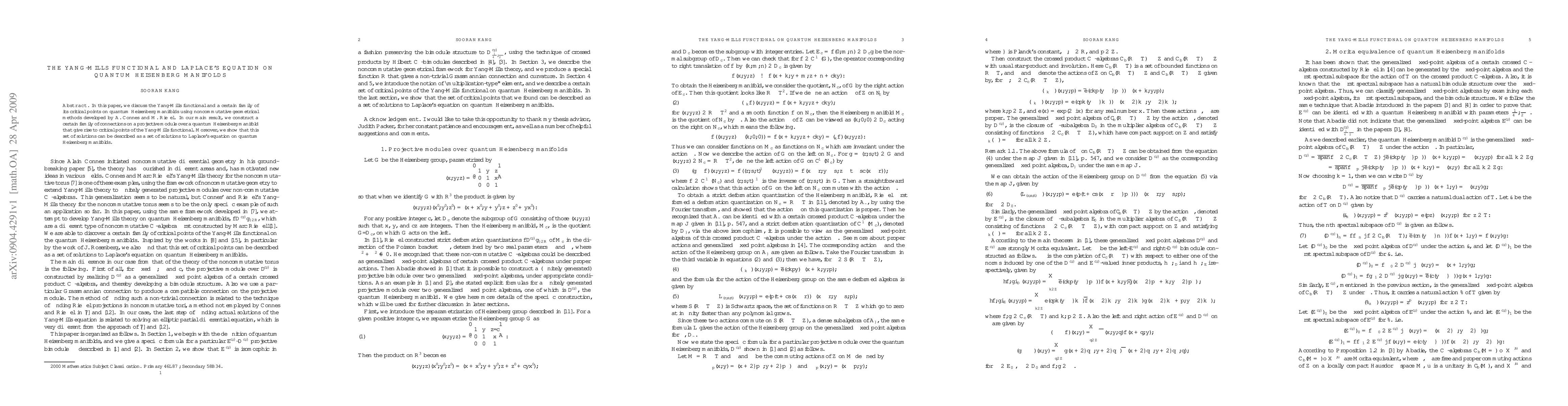 Summary: This paper constructs connections on projective modules over quantum Heisenberg manifolds that yield critical points of the Yang-Mills functional and demonstrates their equivalence to solutions of Laplace's equation on these noncommutative geometric spaces.