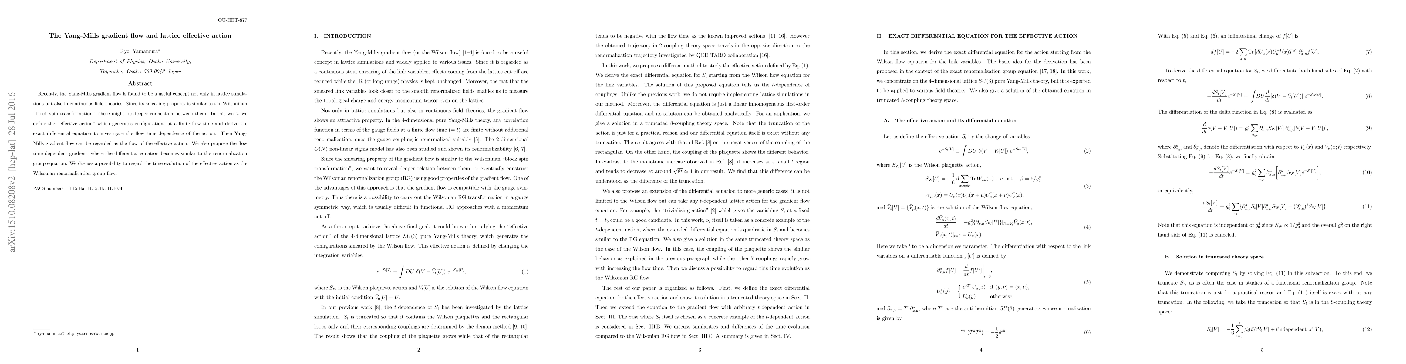 The paper proposes an exact differential equation for the effective action St, enabling the determination of its flow time dependence without lattice simulations. It extends this equation to more generic cases, considering a flow equation for link variables with an arbitrary t-dependent action St.