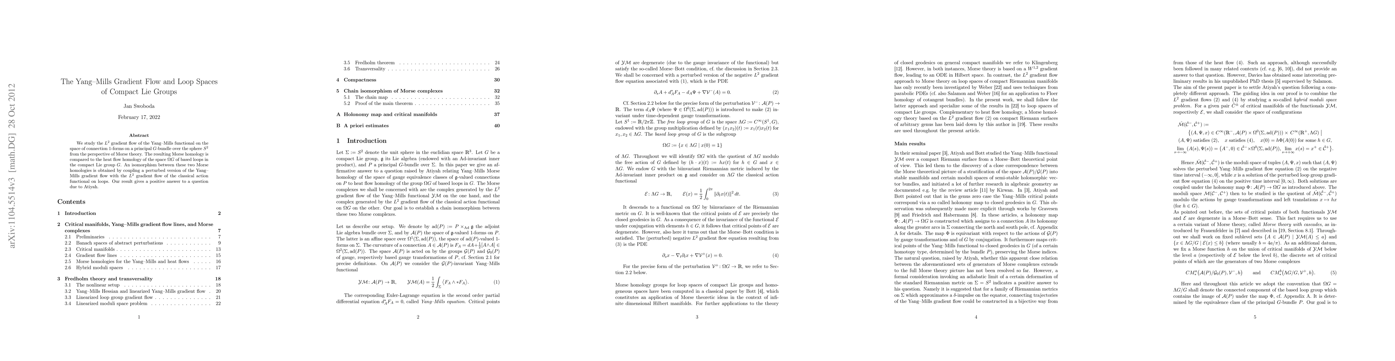 This paper studies the connection between Yang-Mills gradient flow and loop spaces of compact Lie groups, showing an isomorphism between their Morse homologies.