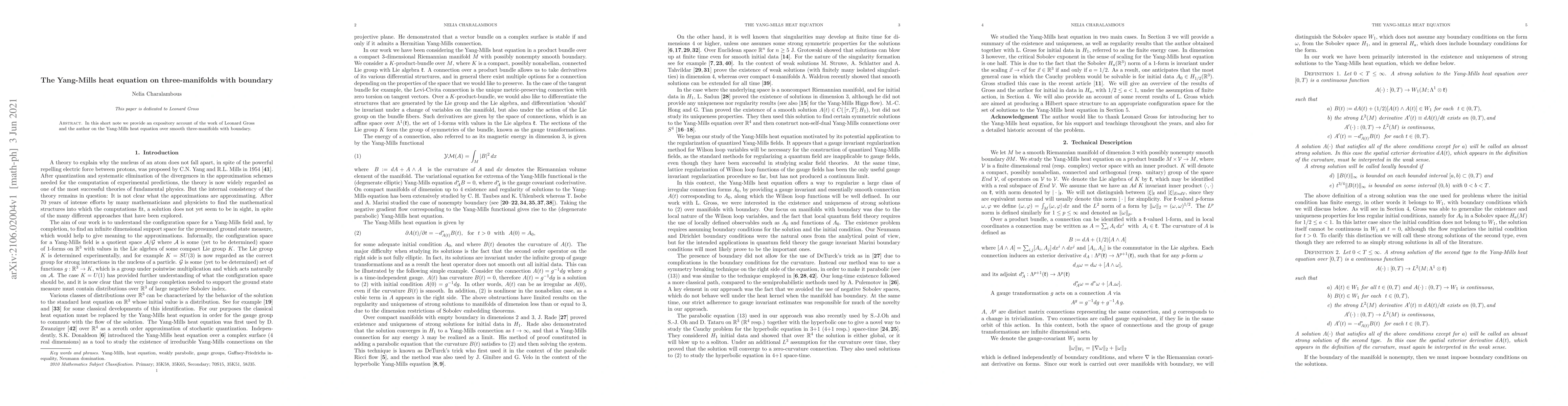 Summary: This paper offers an expository overview of Leonard Gross and the author's work on the Yang-Mills heat equation on smooth three-manifolds with boundaries, elucidating the mathematical framework and implications of their findings.