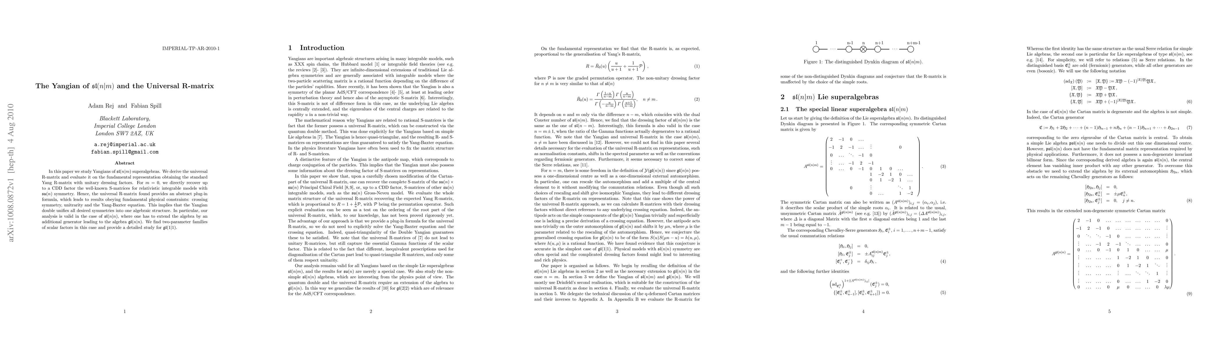 This paper investigates the Yangian of sl(n|m) superalgebras, deriving the universal R-matrix and evaluating it on the fundamental representation. The results unify fundamental physical symmetries, including crossing symmetry, unitarity, and the Yang-Baxter equation, and extend to the gl(n|n) algebra with additional scalar factors.