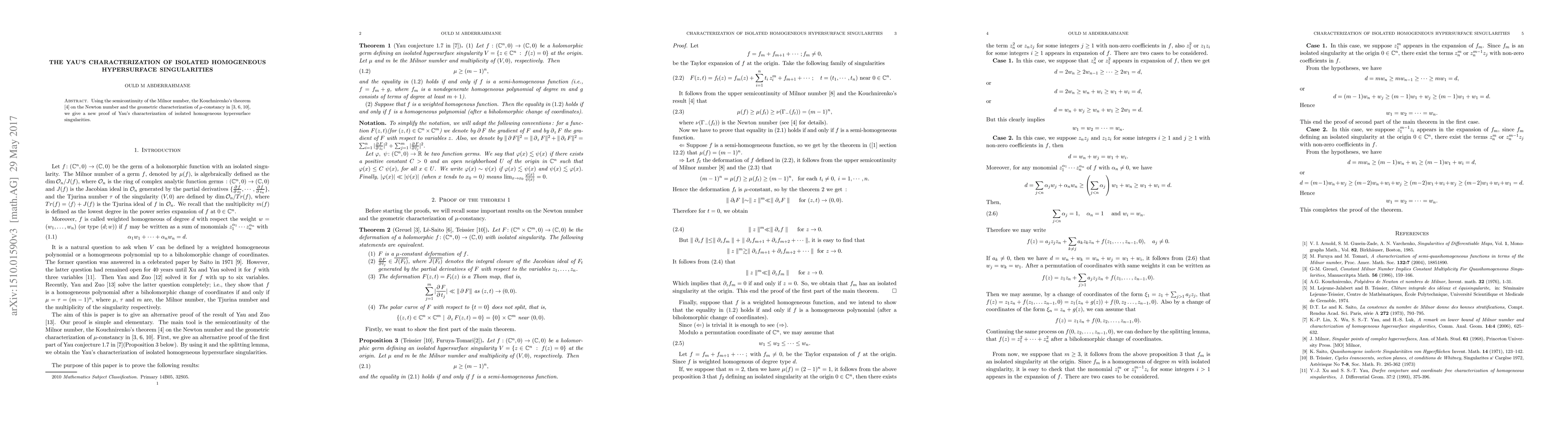Summary: This paper presents a straightforward proof of Yau's characterization of isolated homogeneous hypersurface singularities by leveraging the semicontinuity of the Milnor number and the {\L}ojasiewicz exponent. The result provides a clear understanding of the geometric properties of these singularities.