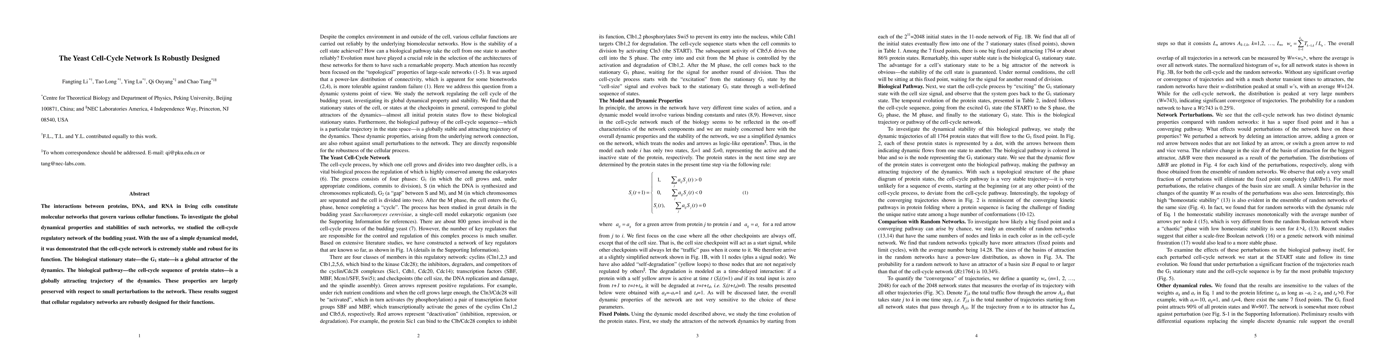 Demonstrated that the yeast cell-cycle network is a robustly designed global attractor under small perturbations, using a simple dynamical model.