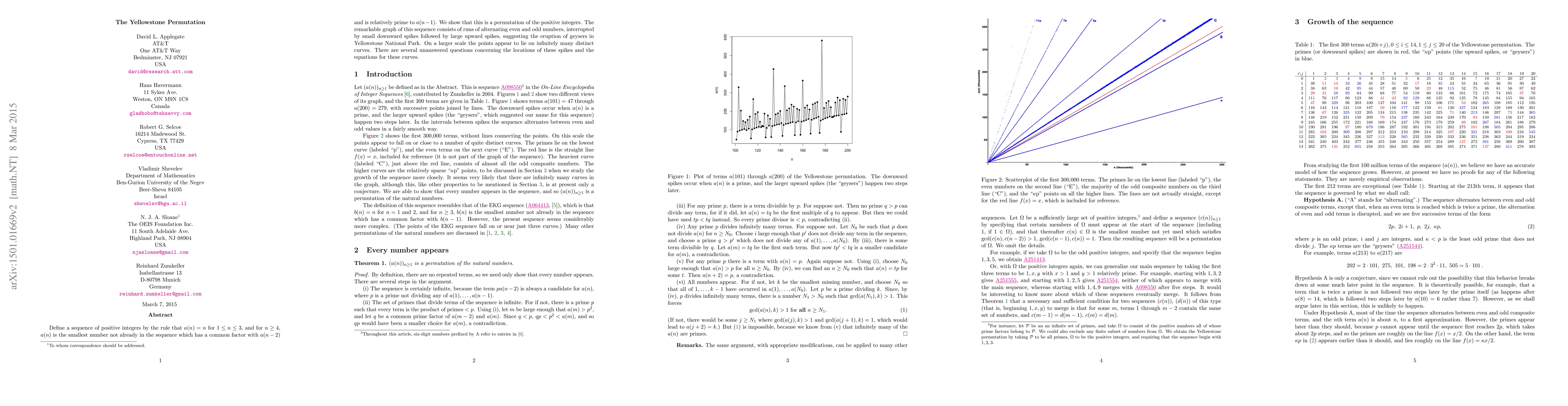 A new sequence of positive integers is defined based on a specific rule, resulting in a permutation that resembles the geysers of Yellowstone National Park. The researchers show that this sequence exhibits alternating patterns and infinitely many distinct curves.
