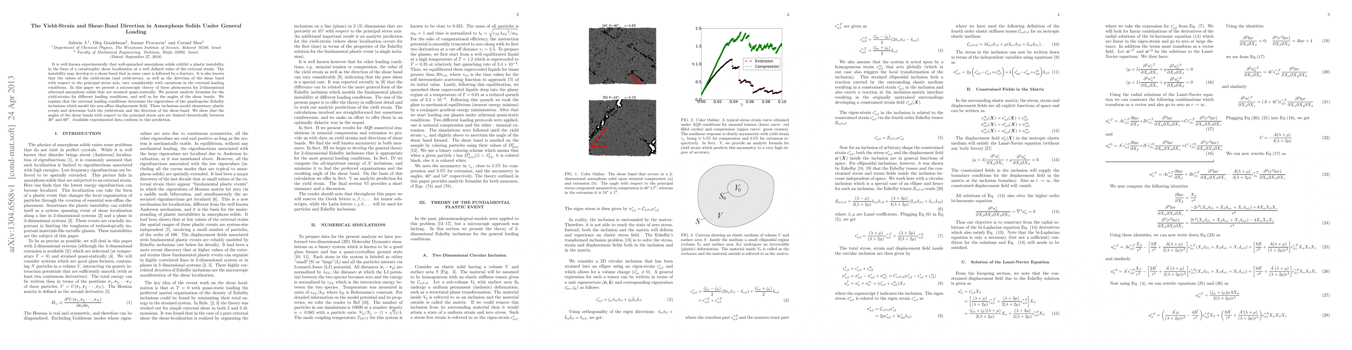 It is well known experimentally that well-quenched amorphous solids exhibit a plastic instability in the form of a catastrophic shear localization at a well defined value of the external strain. The instability may develop to a shear-band that in some cases is followed by a fracture. It is also known that the values of the yield-strain (and yield-stress), as well as the direction of the shear band with respect to the principal stress axis, vary considerably with variations in the external loading conditions. In this paper we present a microscopic theory of these phenomena for 2-dimensional athermal amorphous solids that are strained quasi-statically. We present analytic formulae for the yield-strains for different loading conditions, and well as for the angles of the shear bands. We explain that the external loading conditions determine the eigenvalues of the quadrupolar Eshelby inclusions which model the non-affine displacement field. These inclusions model elementary plastic events and determine both the yield-strain and the direction of the shear-band. We show that the angles of the shear bands with respect to the principal stress axis are limited theoretically between $30^o$ and $60^o$. Available experimental data conform to this prediction.