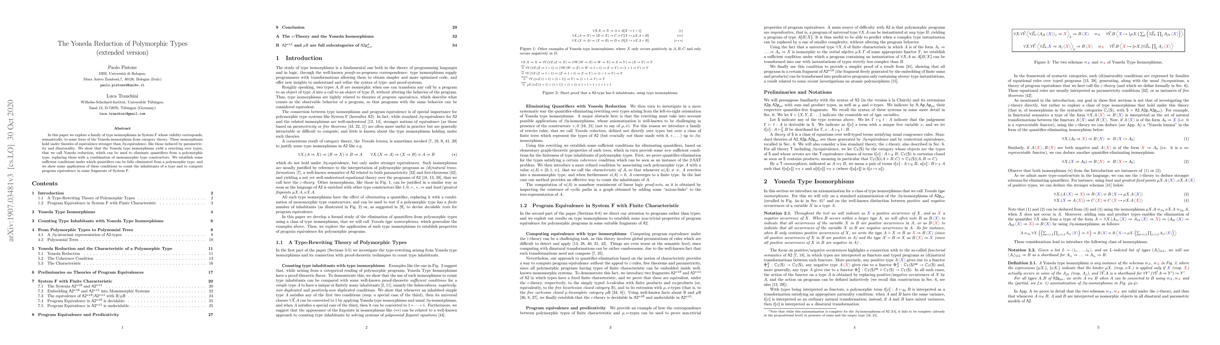 This paper investigates type isomorphisms in System F that mirror the Yoneda isomorphism, enabling quantifier elimination through a process called Yoneda reduction, and applies these findings to count type inhabitants and determine program equivalence in System F fragments.