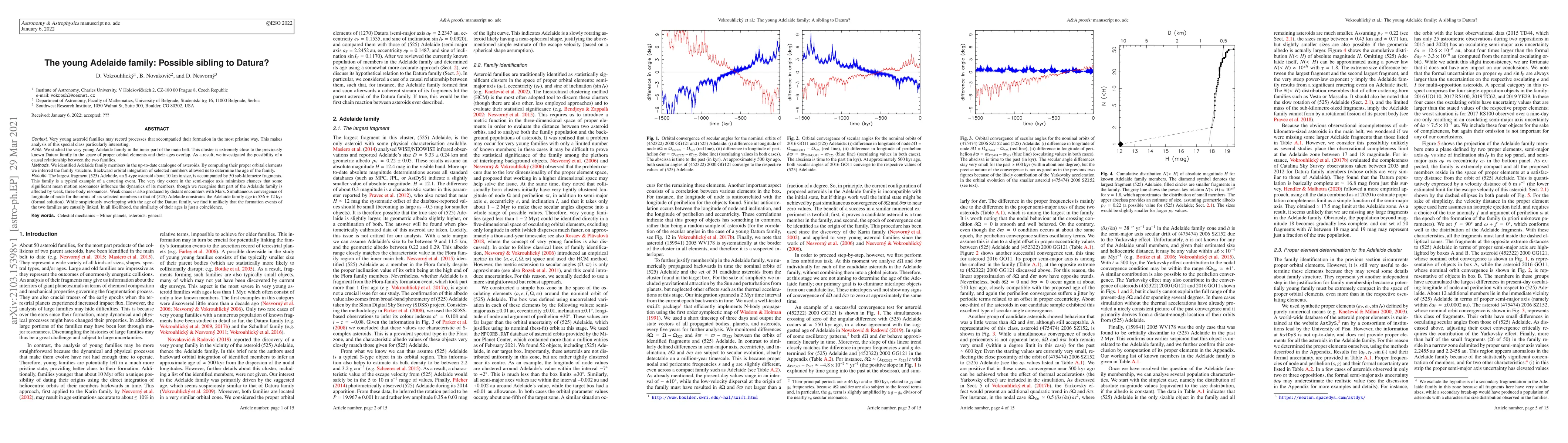 This study investigates the young Adelaide asteroid family in the inner main belt, finding it closely related to the Datura family in terms of orbital elements and age. Despite the overlap, the research suggests that the formation events of the Adelaide and Datura families are likely not causally linked, with the age similarity being coincidental.
