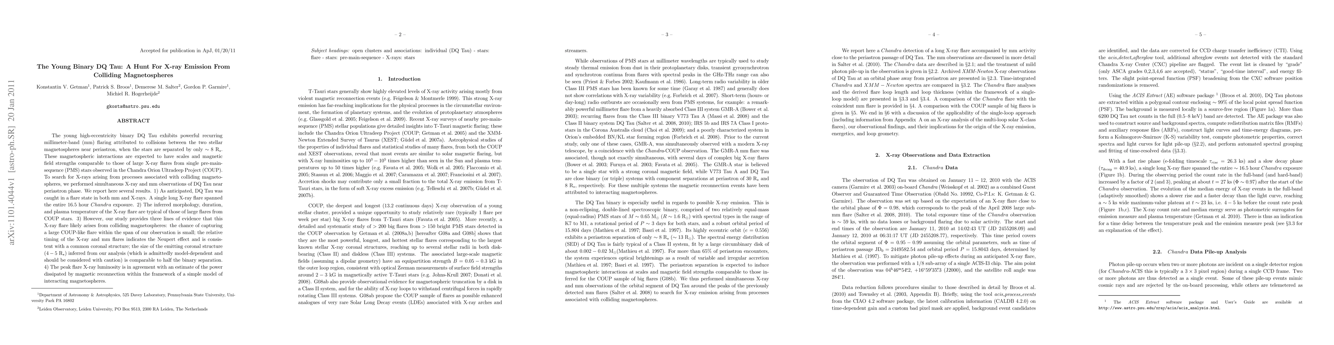 The young binary DQ Tau shows recurring millimeter-band flares due to colliding magnetospheres near periastron, and simultaneous X-ray and mm observations detected a large X-ray flare likely resulting from these interactions, consistent with the Neupert effect and comparable to flares in COUP stars.