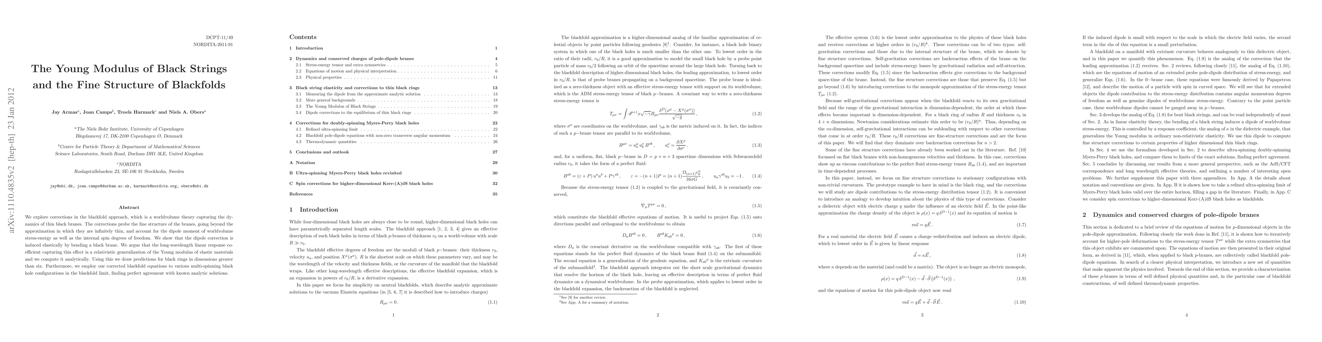 We explore corrections in the blackfold approach, which is a worldvolume theory capturing the dynamics of thin black branes. The corrections probe the fine structure of the branes, going beyond the approximation in which they are infinitely thin, and account for the dipole moment of worldvolume stress-energy as well as the internal spin degrees of freedom. We show that the dipole correction is induced elastically by bending a black brane. We argue that the long-wavelength linear response coefficient capturing this effect is a relativistic generalization of the Young modulus of elastic materials and we compute it analytically. Using this we draw predictions for black rings in dimensions greater than six. Furthermore, we employ our corrected blackfold equations to various multi-spinning black hole configurations in the blackfold limit, finding perfect agreement with known analytic solutions.
