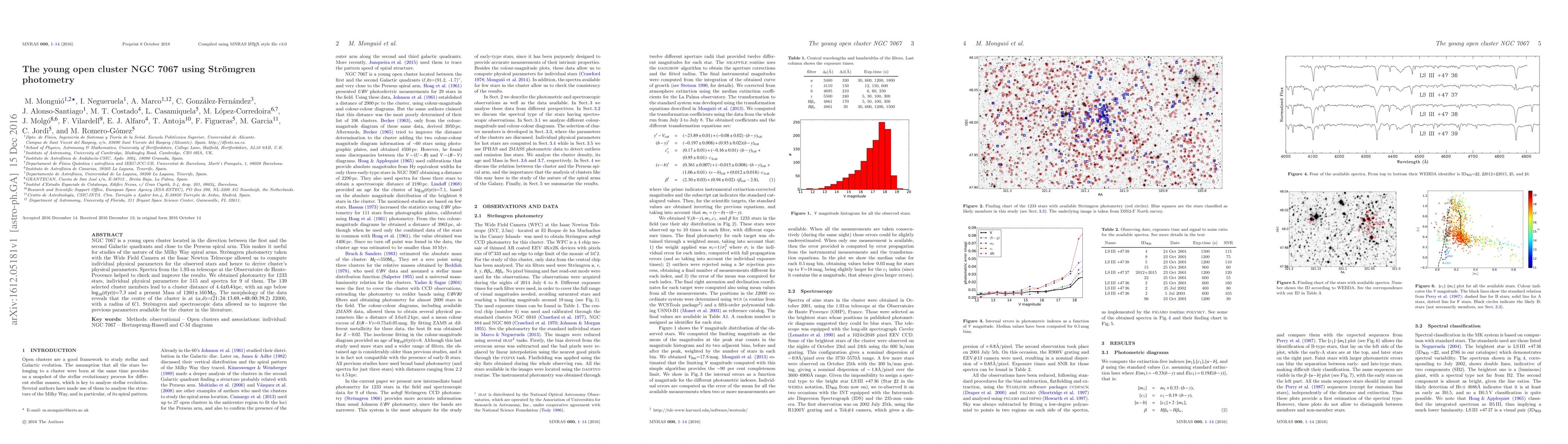 NGC 7067 is a young open cluster located in the direction between the first and the second Galactic quadrants and close to the Perseus spiral arm. This makes it useful for studies of the nature of the Milky Way spiral arms. Stromgren photometry taken with the Wide Field Camera at the Isaac Newton Telescope allowed us to compute individual physical parameters for the observed stars and hence to derive cluster's physical parameters. Spectra from the 1.93-m telescope at the Observatoire de Haute-Provence helped to check and improve the results. We obtained photometry for 1233 stars, individual physical parameters for 515 and spectra for 9 of them. The 139 selected cluster members lead to a cluster distance of 4.4+/-0.4 kpc, with an age below log10(t(yr))=7.3 and a present Mass of 1260+/-160Msun. The morphology of the data reveals that the centre of the cluster is at (ra,dec)=(21:24:13.69,+48:00:39.2) J2000, with a radius of 6.1arcsec. Stromgren and spectroscopic data allowed us to improve the previous parameters available for the cluster in the literature.