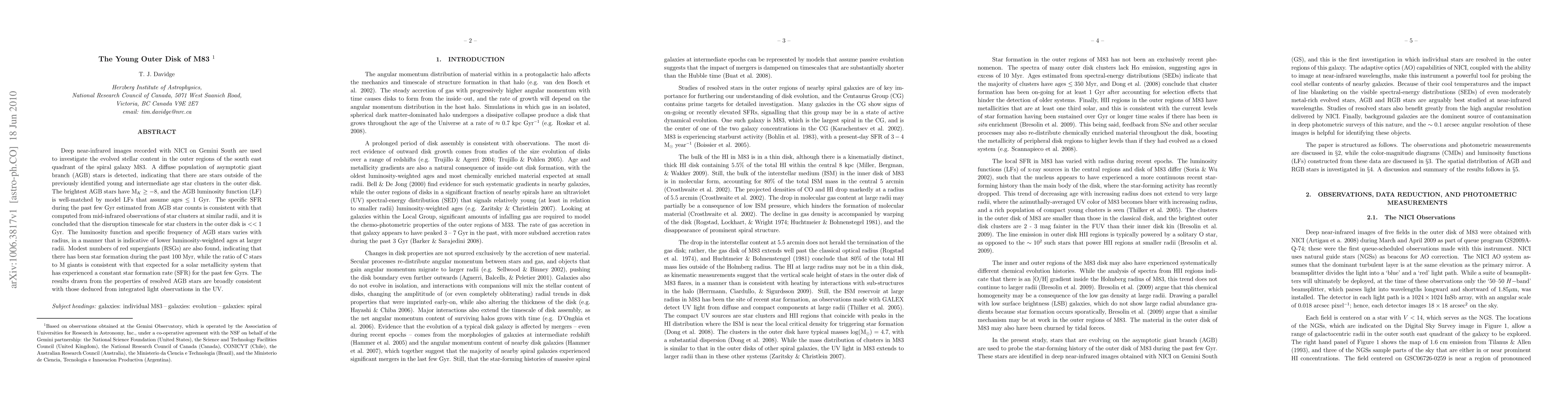 This study uses deep near-infrared images to reveal a diffuse population of AGB stars in the outer disk of M83, indicating ongoing star formation and a disruption timescale for star clusters of less than 1 Gyr. The AGB luminosity function suggests lower luminosity-weighted ages at larger radii, while the presence of red supergiants and a consistent C/M ratio imply a stable star formation history.