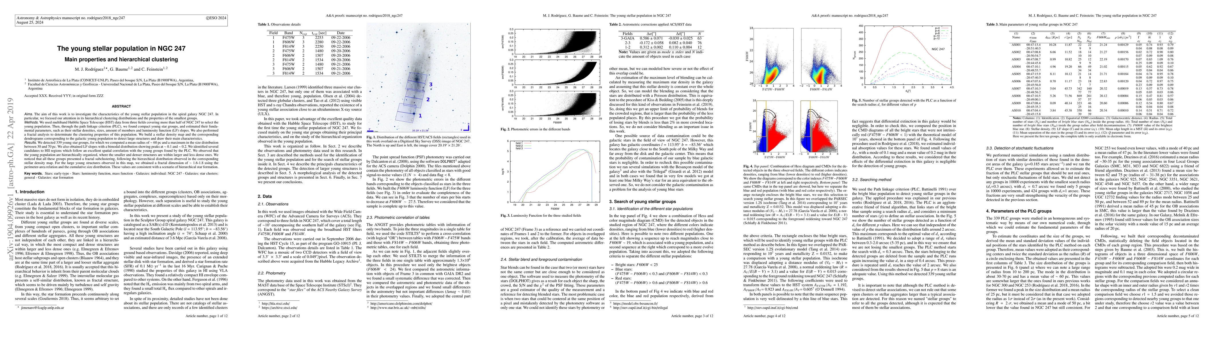 The paper presents a comprehensive analysis of the young stellar population in NGC 247 using advanced data analysis techniques, such as the Path Linkage Criterion and Kernel Density Estimation, to identify and characterize young stellar groups and their hierarchical organization.