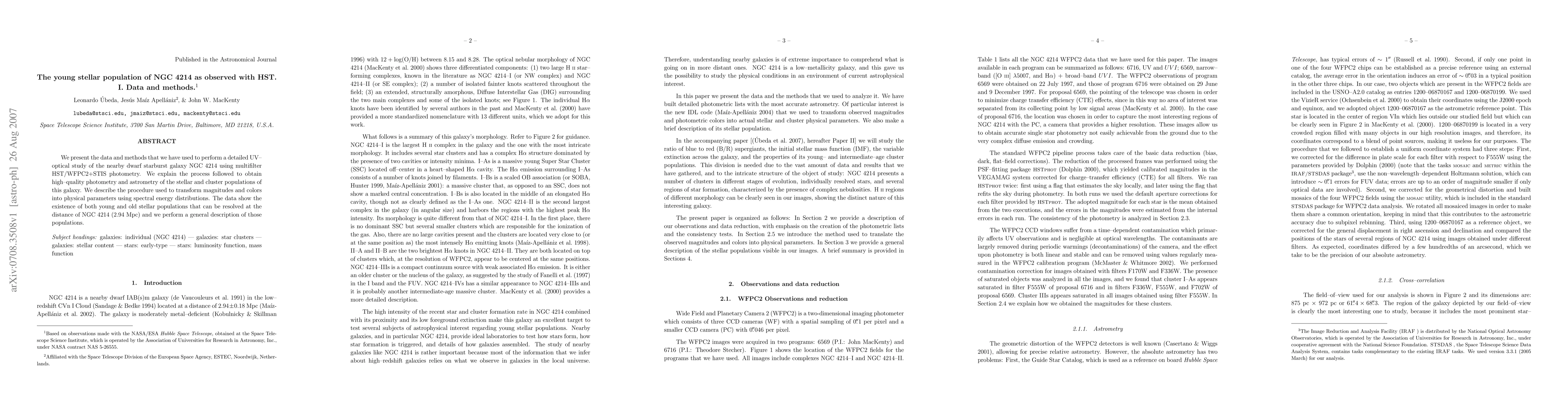 We present the data and methods that we have used to perform a detailed UV-optical study of the nearby dwarf starburst galaxy NGC 4214 using multifilter HST/WFPC2+STIS photometry. We explain the process followed to obtain high-quality photometry and astrometry of the stellar and cluster populations of this galaxy. We describe the procedure used to transform magnitudes and colors into physical parameters using spectral energy distributions. The data show the existence of both young and old stellar populations that can be resolved at the distance of NGC 4214 (2.94 Mpc) and we perform a general description of those populations.