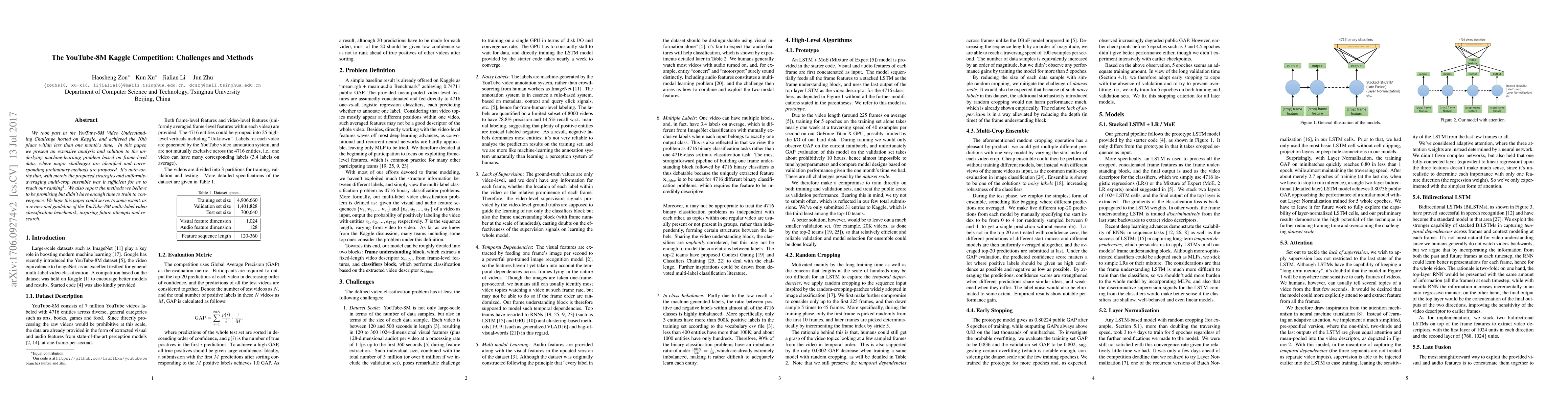 Researchers achieved 10th place in the YouTube-8M Video Understanding Challenge with a frame-level data solution, identifying key challenges and proposing preliminary methods for future research.