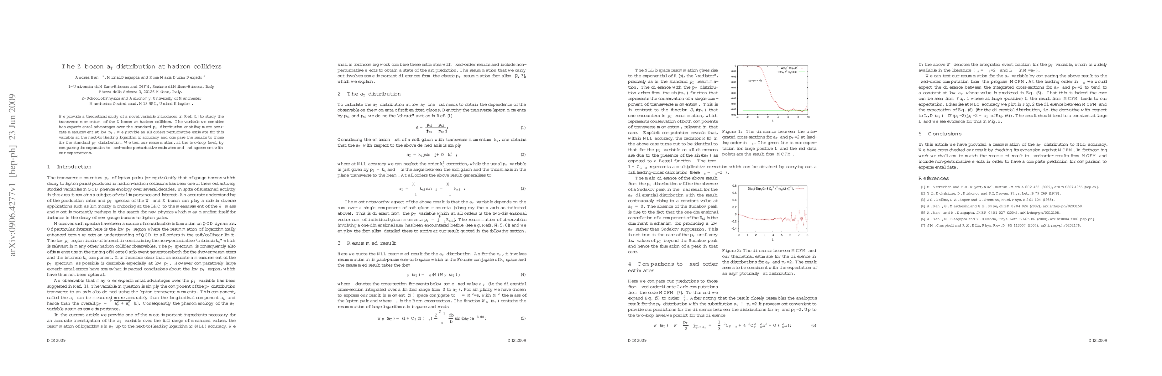 We provide a theoretical study of a novel variable introduced in Ref. \cite{WV} to study the transverse momentum of the Z boson at hadron colliders. The variable we consider has experimental advantages over the standard $p_T$ distribution enabling more accurate measurement at low $p_T$. We provide an all orders perturbative estimate for this variable at the next-to--leading logarithmic accuracy and compare the results to those for the standard $p_T$ distribution. We test our resummation, at the two-loop level, by comparing its expansion to fixed-order perturbative estimates and find agreement with our expectations.
