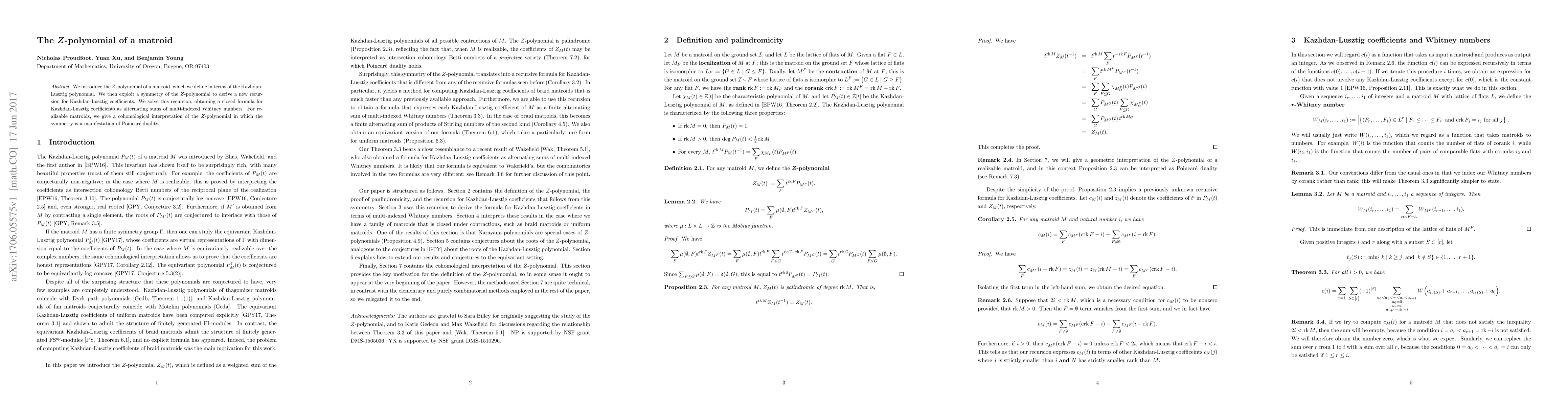 This paper introduces the Z-polynomial of a matroid, defined via the Kazhdan-Lusztig polynomial, and derives a new recursion for Kazhdan-Lusztig coefficients, solving it to obtain a closed formula as alternating sums of Whitney numbers. The symmetry in the Z-polynomial is interpreted cohomologically for realizable matroids through Poincare duality.