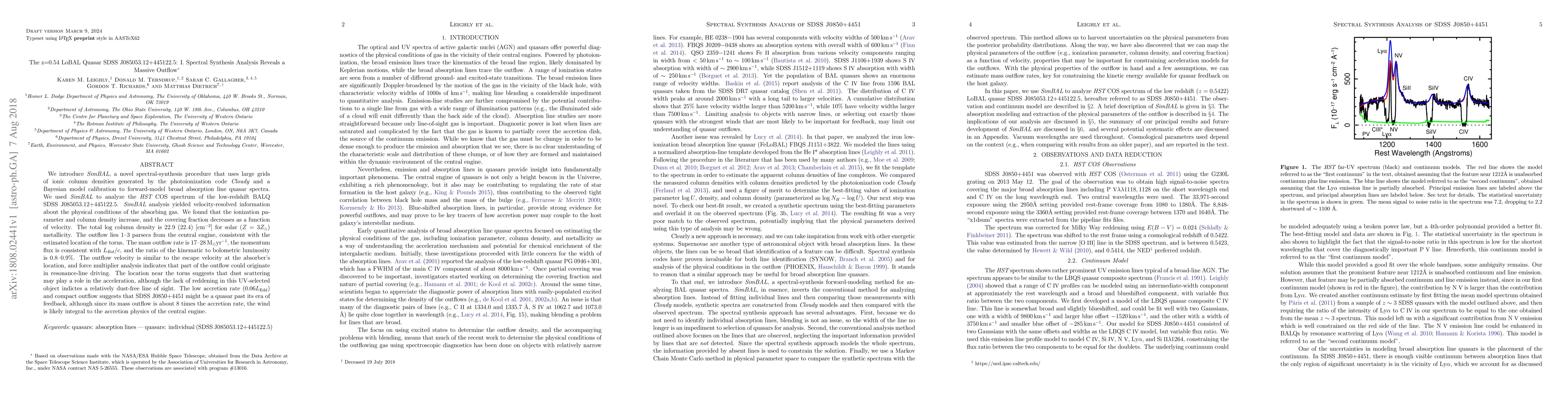 This paper introduces a new spectral-synthesis method, SimBAL, to analyze the broad absorption line quasar SDSS J085053.12+445122.5. The analysis reveals a massive outflow with a mass outflow rate of 17-28 M_\odot yr^-1, suggesting the quasar may be past its feedback era despite its significant wind.