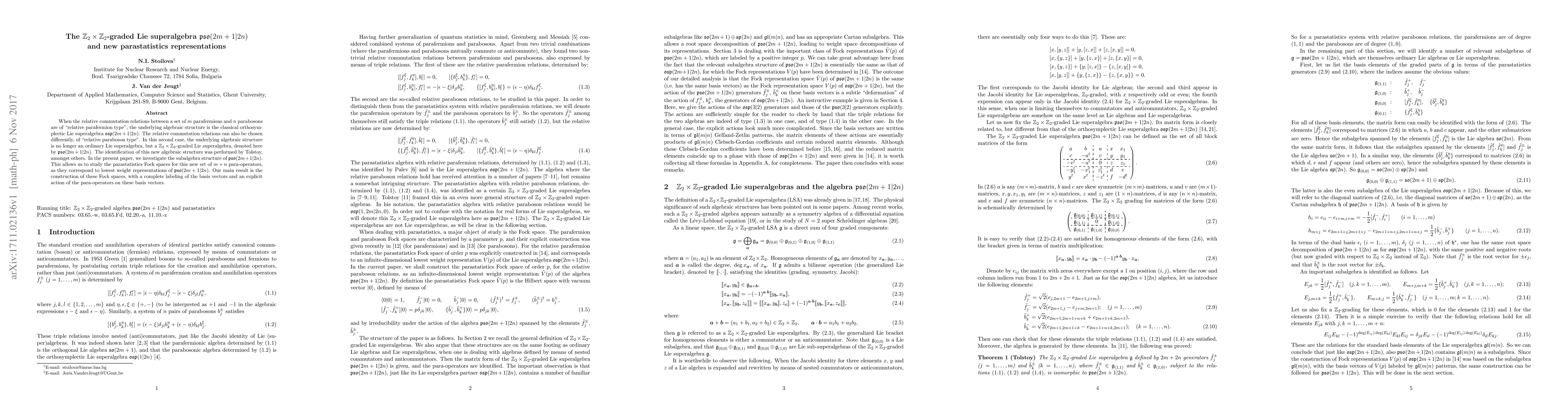 When the relative commutation relations between a set of m parafermions and n parabosons are of ``relative parafermion type'', the underlying algebraic structure is the classical orthosymplectic Lie superalgebra osp(2m+1|2n). The relative commutation relations can also be chosen differently, of ``relative paraboson type''. In this second case, the underlying algebraic structure is no longer an ordinary Lie superalgebra, but a Z_2 x Z_2$-graded Lie superalgebra, denoted here by pso(2m+1|2n). The identification of this new algebraic structure was performed by Tolstoy, amongst others. In the present paper, we investigate the subalgebra structure of pso(2m+1|2n). This allows us to study the parastatistics Fock spaces for this new set of m+n para-operators, as they correspond to lowest weight representations of pso(2m+1|2n). Our main result is the construction of these Fock spaces, with a complete labeling of the basis vectors and an explicit action of the para-operators on these basis vectors.
