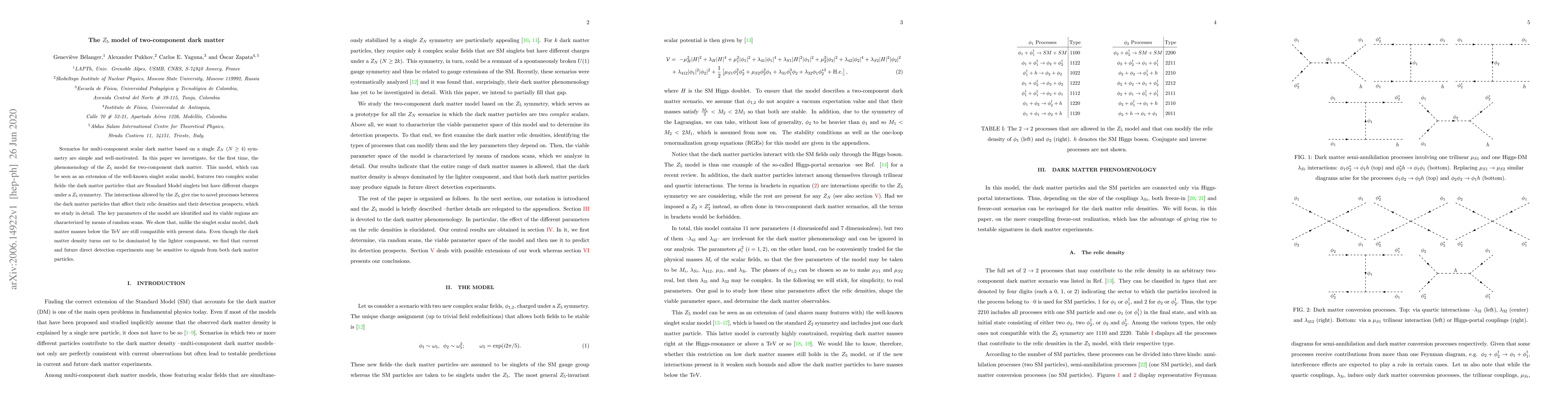 This paper explores the phenomenology of a $Z_5$ model for two-component dark matter, featuring two complex scalar fields with distinct $Z_5$ charges. It identifies key parameters and viable regions, revealing that dark matter masses below the TeV scale remain compatible with current data, and that both components may be detectable in future experiments.
