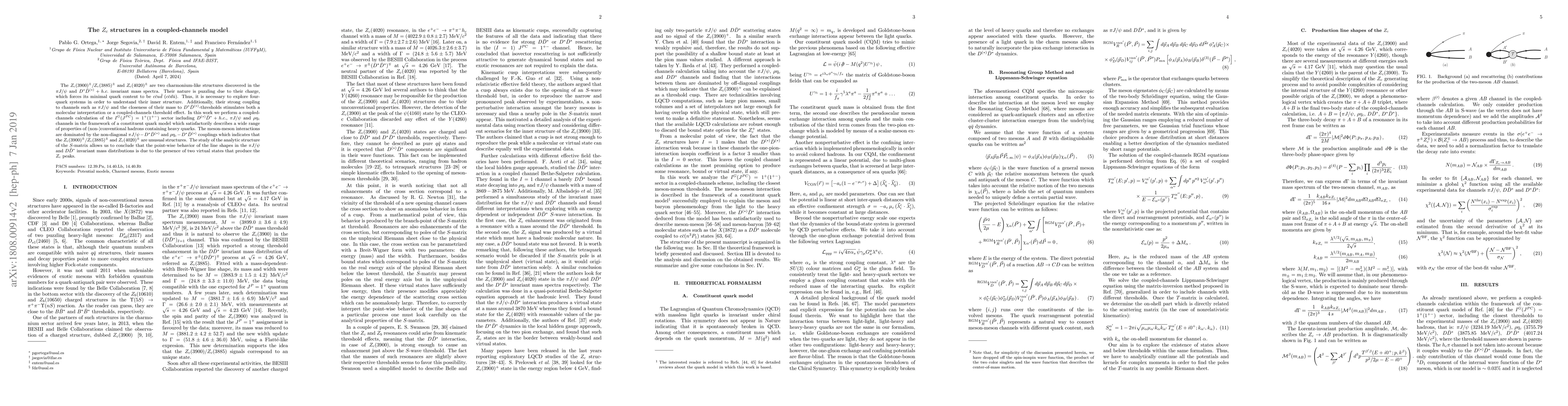 The $Z_{c}(3900)^\pm/Z_c(3885)^\pm$ and $Z_{c}(4020)^\pm$ are two charmonium-like structures discovered in the $\pi J/\psi$ and $D^\ast\bar D^{(\ast)}+h.c.$ invariant mass spectra. Their nature is puzzling due to their charge, which forces its minimal quark content to be $c\bar c u\bar d$ ($c\bar c d\bar u$). Thus, it is necessary to explore four-quark systems in order to understand their inner structure. Additionally, their strong coupling to channels such as $\pi J/\psi$ and the closeness of their mass to $D^\ast\bar D^{(\ast)}$-thresholds stimulates both a molecular interpretation or a coupled-channels threshold effect. In this work we perform a coupled-channels calculation of the $I^G(J^{PC})=1^+(1^{+-})$ sector including $D^{(\ast)}\bar D^{\ast}+h.c.$, $\pi J/\psi$ and $\rho\eta_c$ channels in the framework of a constituent quark model which satisfactorily describes a wide range of properties of (non-)conventional hadrons containing heavy quarks. The meson-meson interactions are dominated by the non-diagonal $\pi J/\psi-D^\ast\bar D^{(\ast)}$ and $\rho\eta_c-D^\ast\bar D^{(\ast)}$ couplings which indicates that the $Z_{c}(3900)^\pm/Z_c(3885)^\pm$ and $Z_{c}(4020)^\pm$ are unusual structures. The study of the analytic structure of the $S$-matrix allows us to conclude that the point-wise behavior of the line shapes in the $\pi J/\psi$ and $D\bar D^*$ invariant mass distributions is due to the presence of two virtual states that produce the $Z_c$ peaks.