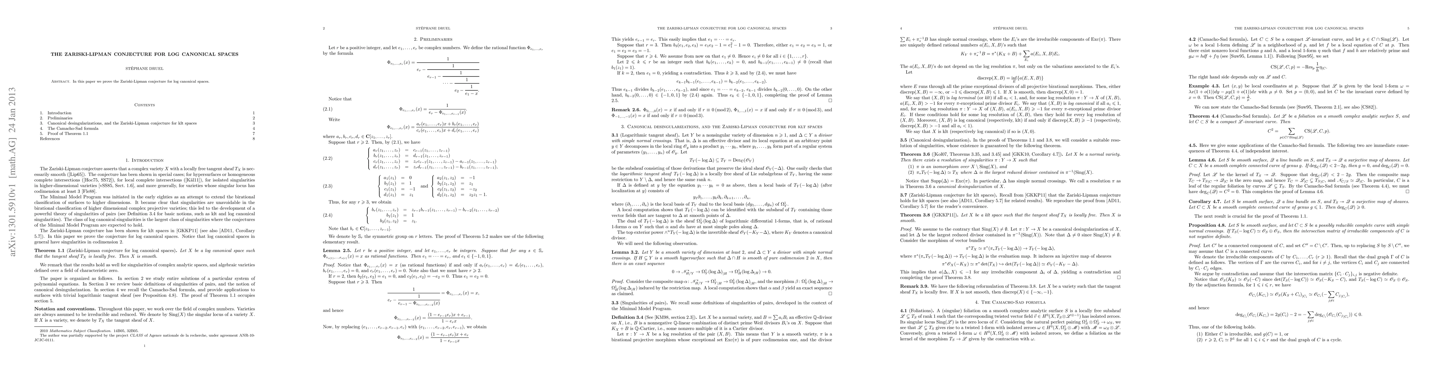 Summary: The paper establishes the Zariski-Lipman conjecture for log canonical spaces, providing a significant advancement in the understanding of these geometric structures. This result contributes to the broader field of algebraic geometry.