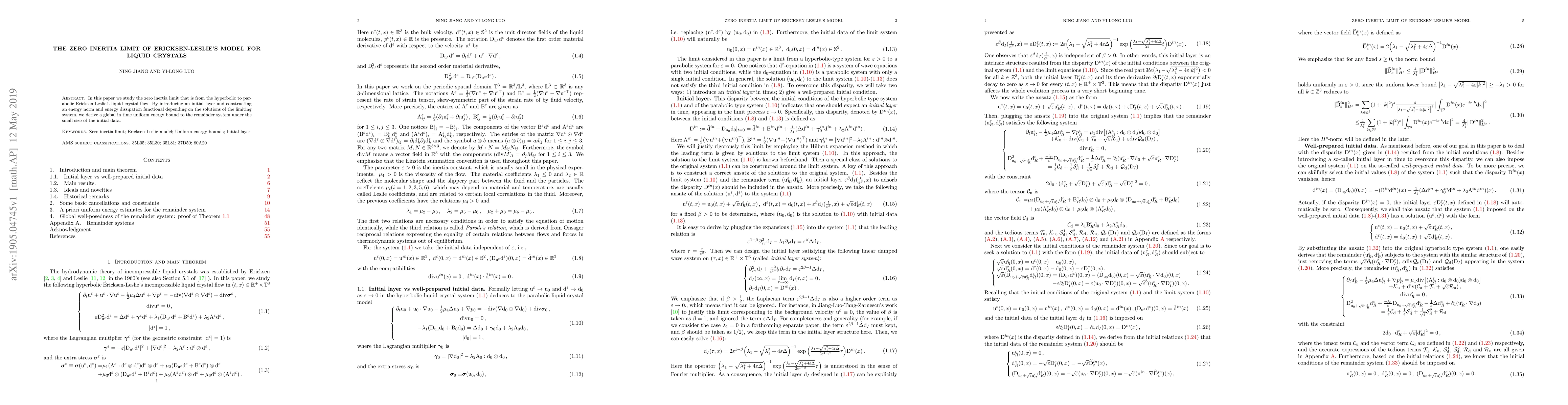 This paper investigates the transition from hyperbolic to parabolic Ericksen-Leslie's liquid crystal flow in the zero inertia limit, establishing a global uniform energy bound for the remainder system using an initial layer and energy functionals.