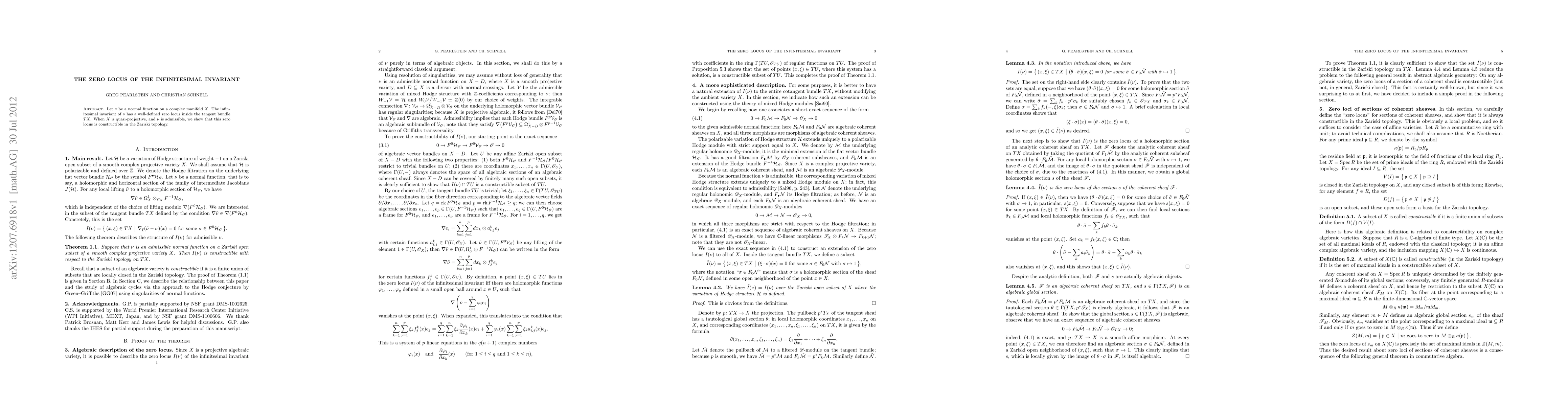Let {\nu} be a normal function on a complex manifold X. The infinitesimal invariant of {\nu} has a well-defined zero locus inside the tangent bundle TX. When X is quasi-projective, and {\nu} is admissible, we show that this zero locus is constructible in the Zariski topology.