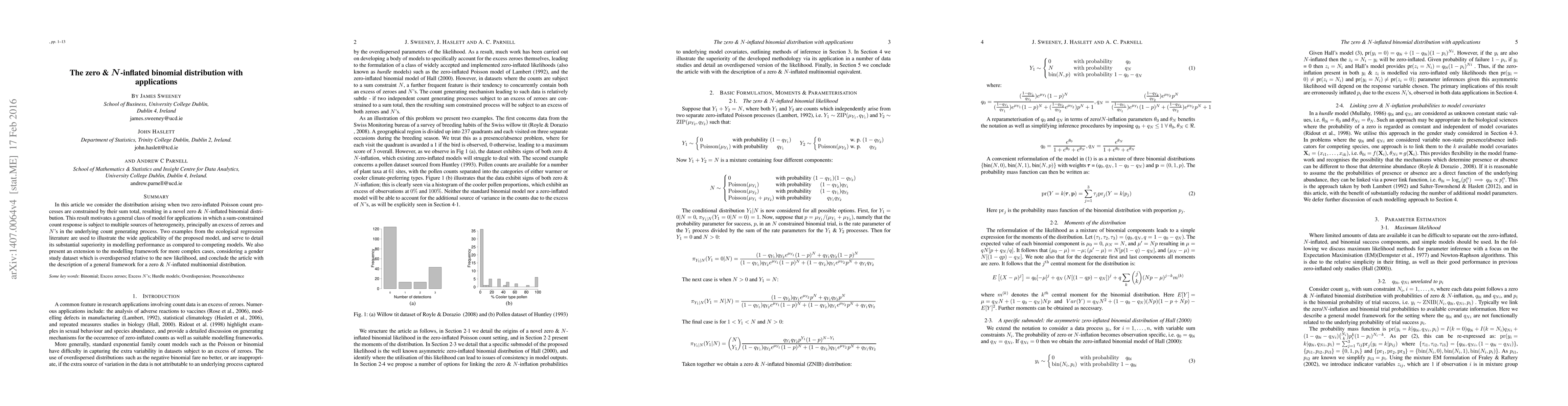In this article we consider the distribution arising when two zero-inflated Poisson count processes are constrained by their sum total, resulting in a novel zero & $N$-inflated binomial distribution. This result motivates a general class of model for applications in which a sum-constrained count response is subject to multiple sources of heterogeneity, principally an excess of zeroes and $N$'s in the underlying count generating process. Two examples from the ecological regression literature are used to illustrate the wide applicability of the proposed model, and serve to detail its substantial superiority in modelling performance as compared to competing models. We also present an extension to the modelling framework for more complex cases, considering a gender study dataset which is overdispersed relative to the new likelihood, and conclude the article with the description of a general framework for a zero & $N$-inflated multinomial distribution.
