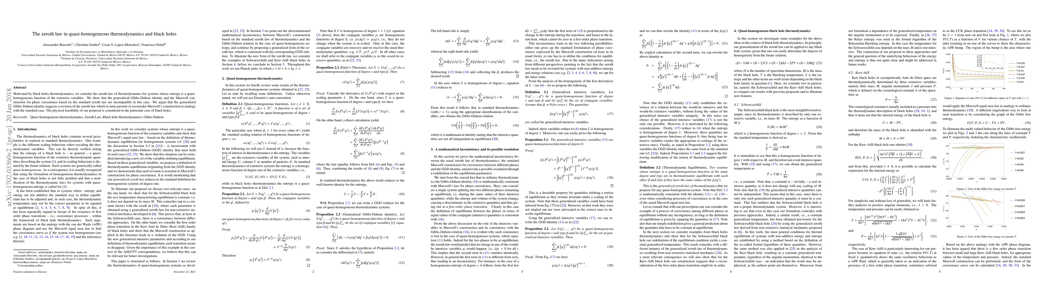 Motivated by black holes thermodynamics, we consider the zeroth law of thermodynamics for systems whose entropy is a quasi-homogeneous function of the extensive variables. We show that the generalized Gibbs-Duhem identity and the Maxwell construction for phase coexistence based on the standard zeroth law are incompatible in this case. We argue that the generalized Gibbs-Duhem identity suggests a revision of the zeroth law which in turns permits to reconsider Maxwell's construction in analogy with the standard case. The physical feasibility of our proposal is considered in the particular case of black holes.