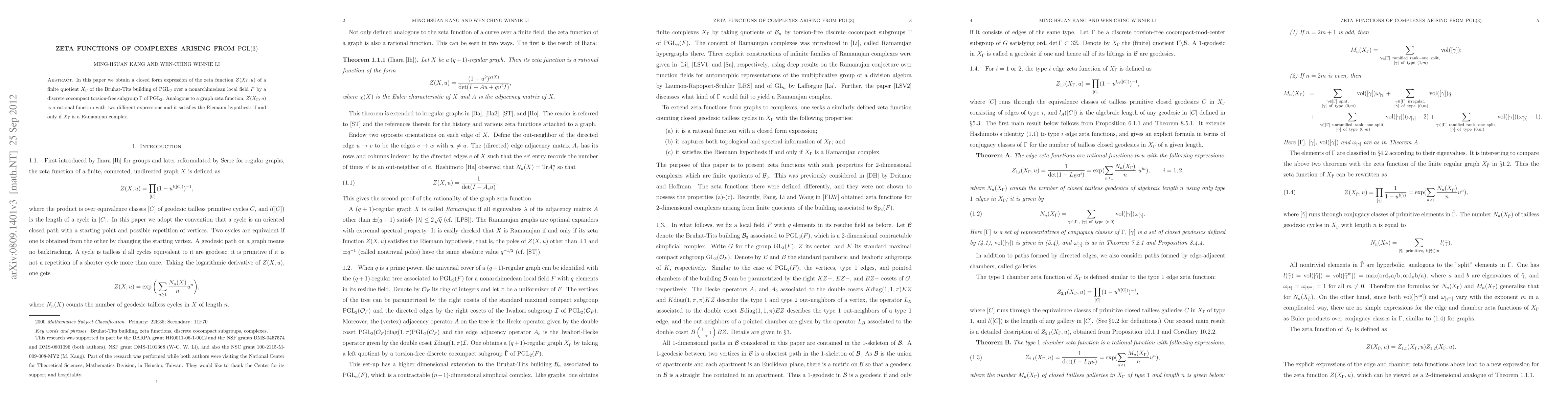 The zeta function attached to a finite complex $X_\Gamma$ arising from the Bruhat-Tits building for $\PGL_3(F)$ was studied in \cite{KL}, where a closed form expression was obtained by a combinatorial argument. This identity can be rephrased using operators on vertices, edges, and directed chambers of $X_\Gamma$. In this paper we reprove the zeta identity from a different aspect by analyzing the eigenvalues of these operators using representation theory. As a byproduct, we obtain equivalent criteria for a Ramanujan complex in terms of the eigenvalues of the operators on vertices, edges, and directed chambers, respectively.