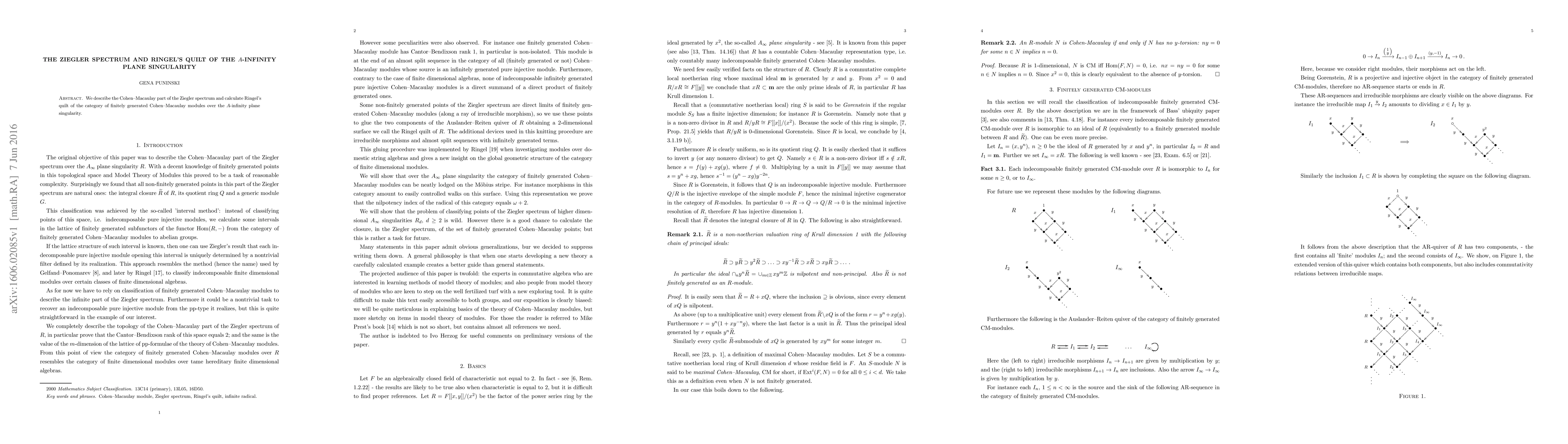 We describe the Cohen-Macaulay part of the Ziegler spectrum and calculate Ringel's quilt of the category of finitely generated Cohen--Macaulay modules over the A-infinity plane singularity.