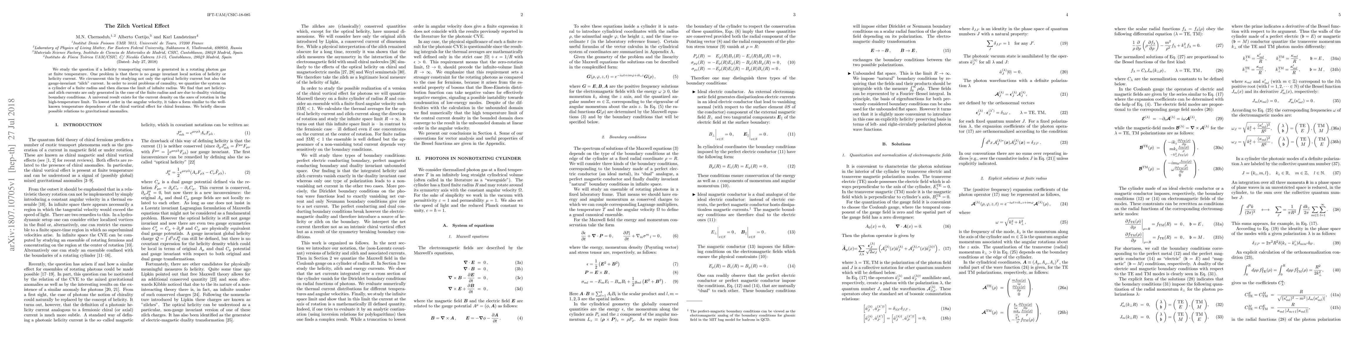 We study the question if a helicity transporting current is generated in a rotating photon gas at finite temperature. One problem is that there is no gauge invariant local notion of helicity or helicity current. We circumvent this by studying not only the optical helicity current but also the gauge-invariant "zilch" current. In order to avoid problems of causality, we quantize the system on a cylinder of a finite radius and then discuss the limit of infinite radius. We find that net helicity- and zilch currents are only generated in the case of the finite radius and are due to duality violating boundary conditions. A universal result exists for the current density on the axes of rotation in the high-temperature limit. To lowest order in the angular velocity, it takes a form similar to the well-known temperature dependence of the chiral vortical effect for chiral fermions. We briefly discuss possible relations to gravitational anomalies.