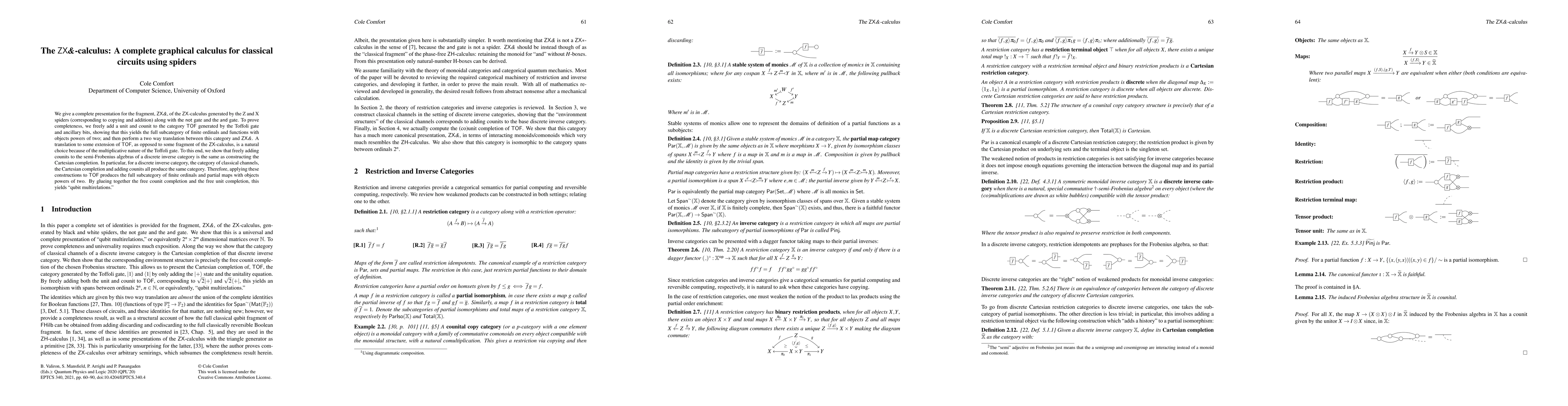 We give a complete presentation for the fragment, ZX&, of the ZX-calculus generated by the Z and X spiders (corresponding to copying and addition) along with the not gate and the and gate. To prove completeness, we freely add a unit and counit to the category TOF generated by the Toffoli gate and ancillary bits, showing that this yields the full subcategory of finite ordinals and functions with objects powers of two; and then perform a two way translation between this category and ZX&. A translation to some extension of TOF, as opposed to some fragment of the ZX-calculus, is a natural choice because of the multiplicative nature of the Toffoli gate. To this end, we show that freely adding counits to the semi-Frobenius algebras of a discrete inverse category is the same as constructing the Cartesian completion. In particular, for a discrete inverse category, the category of classical channels, the Cartesian completion and adding counits all produce the same category. Therefore, applying these constructions to TOF produces the full subcategory of finite ordinals and partial maps with objects powers of two. By glueing together the free counit completion and the free unit completion, this yields "qubit multirelations."
