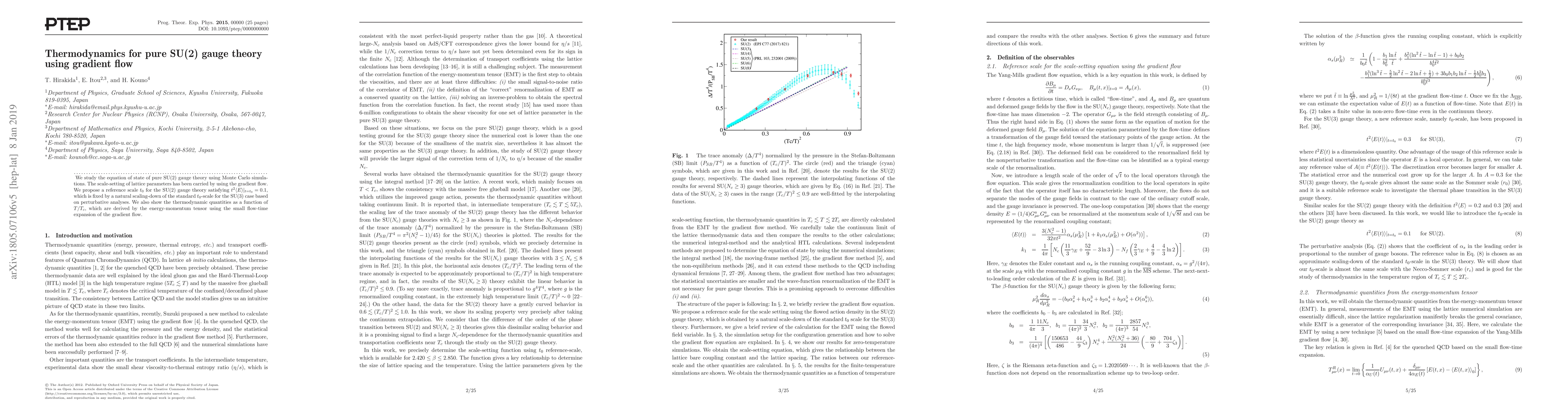 This paper investigates the equation of state of pure SU($2$) gauge theory via Monte Carlo simulations, employing gradient flow for scale-setting. A new reference scale $t_0$ is proposed, derived from the SU($3$) case, and thermodynamic quantities are analyzed relative to the critical temperature $T_c$.