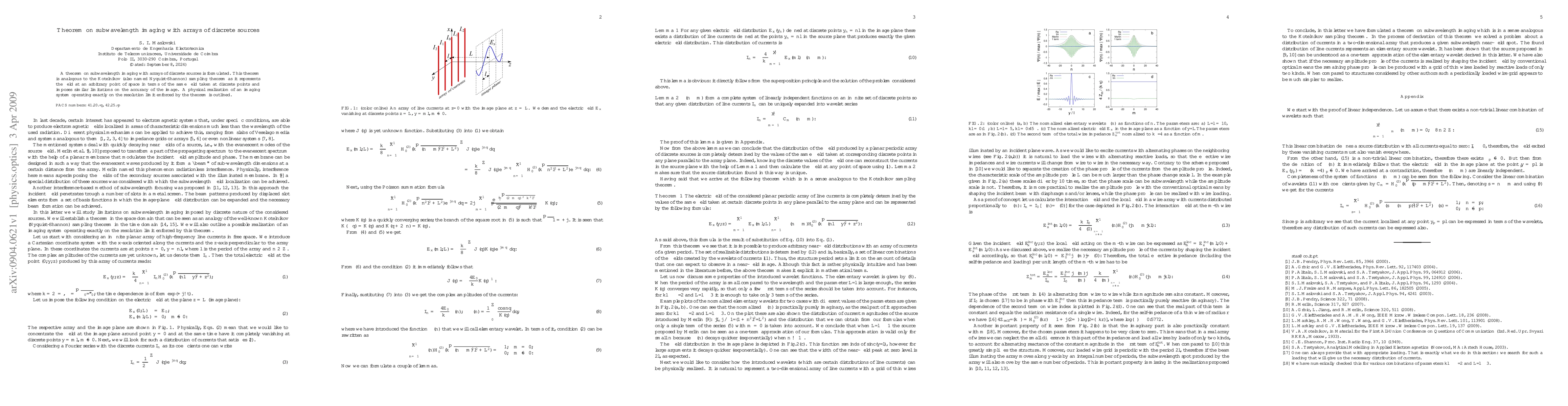 A theorem on subwavelength imaging with arrays of discrete sources is formulated. This theorem is analogous to the Kotelnikov (also named Nyquist-Shannon) sampling theorem as it represents the field at an arbitrary point of space in terms of the same field taken at discrete points and imposes similar limitations on the accuracy of the image. A physical realization of an imaging system operating exactly on the resolution limit enforced by the theorem is outlined.
