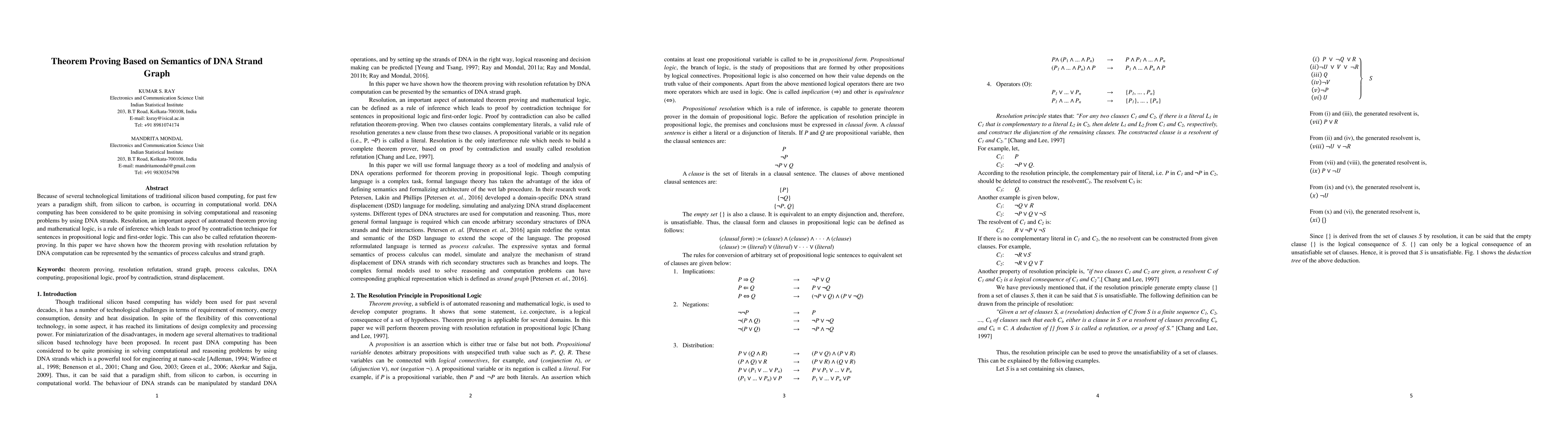 Introduces a DNA strand graph-based formalism for theorem proving with resolution refutation, combining process calculus and strand graph semantics.